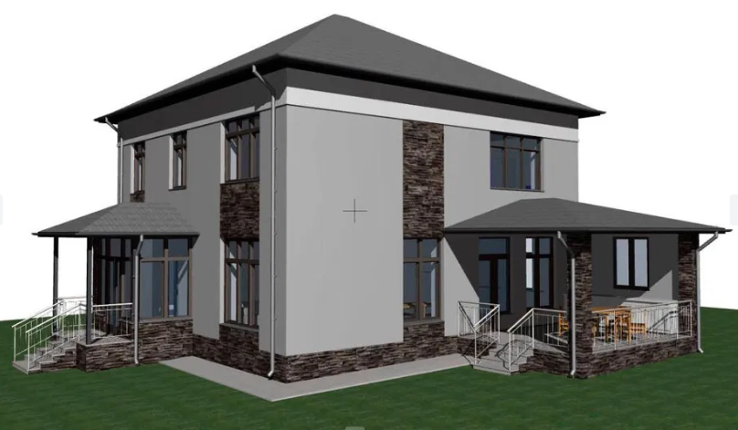 Будинок збудований із 40-сантиметрового газобетону, що забезпечує міцність та енергоефективність. Встановлено вікна з високими теплозберігаючими властивостями.