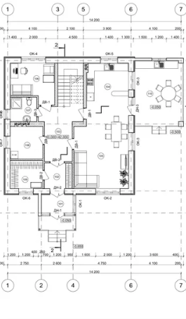 1-й поверх: простора кухня-вітальня, гардеробна, санвузол із душем, кабінет, котельня, тераса.