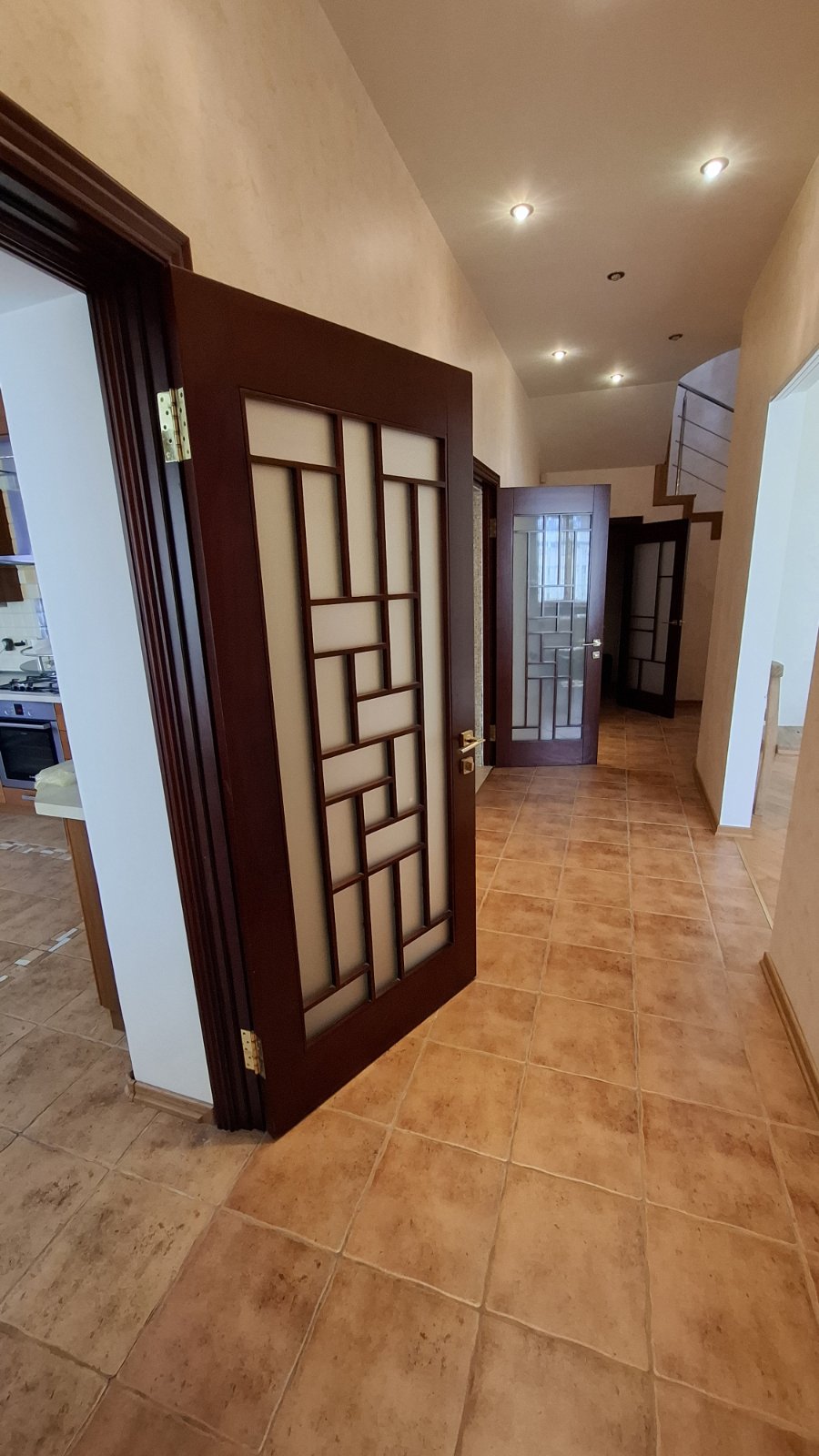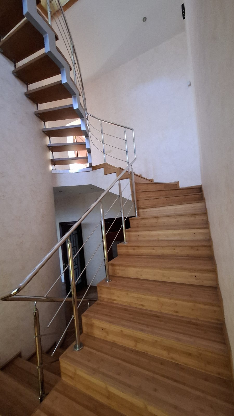 Ухоженный участок с госактом. Дом 240 м², 3 уровня, 2 этажа и жилая мансарда, подвал под всем домом. В подвале пищевые ёмкости для запаса проточной вода на 2,5 м³. Вода - артезианская скважина. 5 комнат на первых двух уровнях.