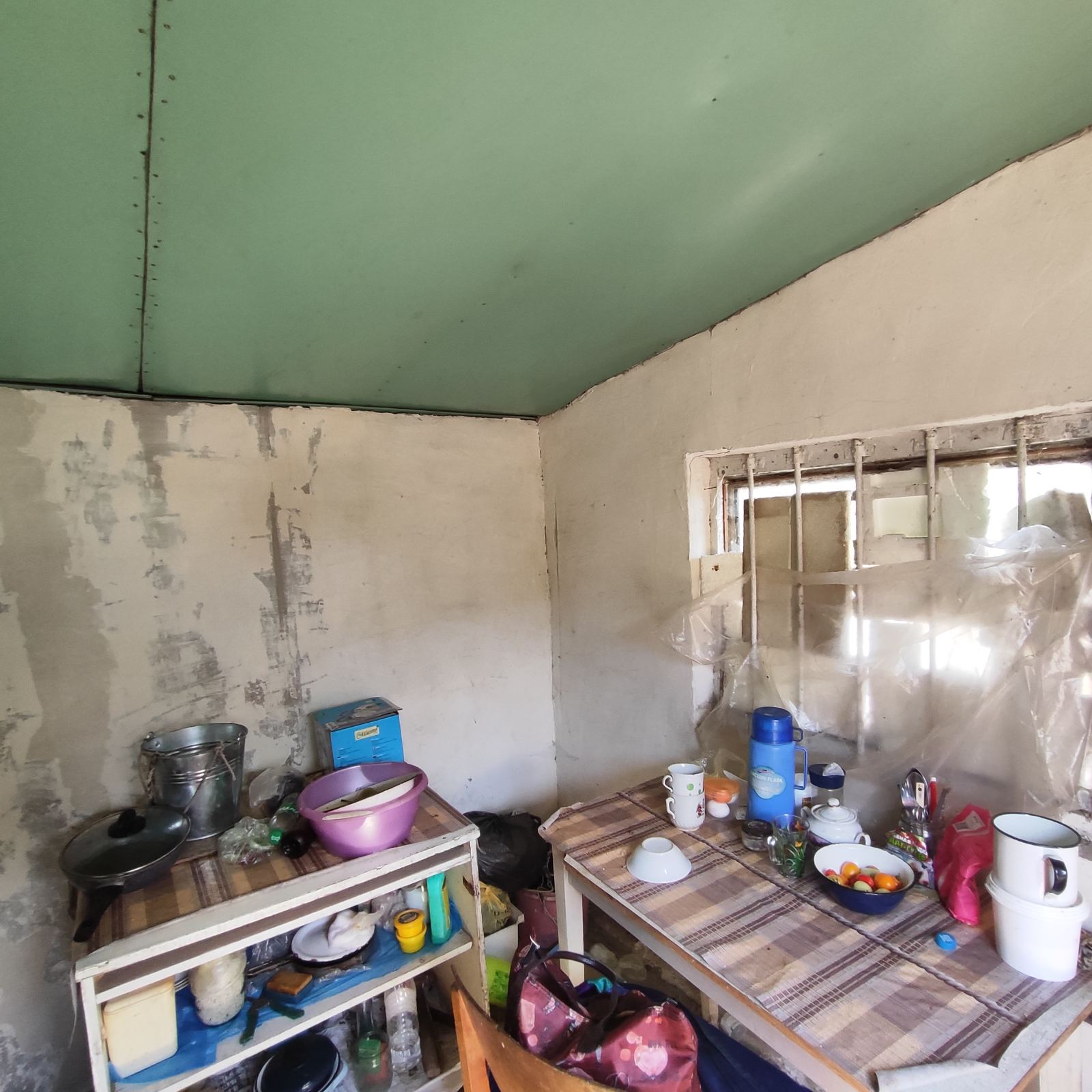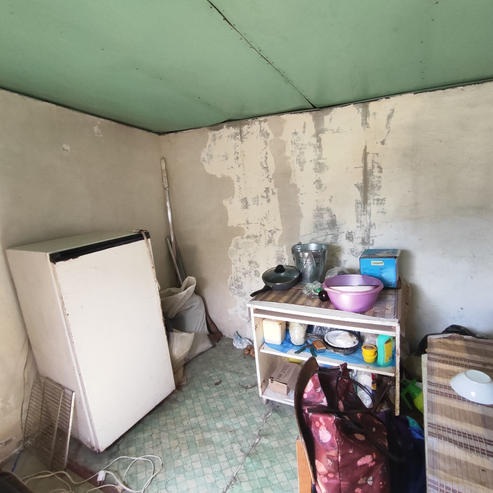 В доме одна комната -16 м.кв, рядом кухня с входом в подвал.