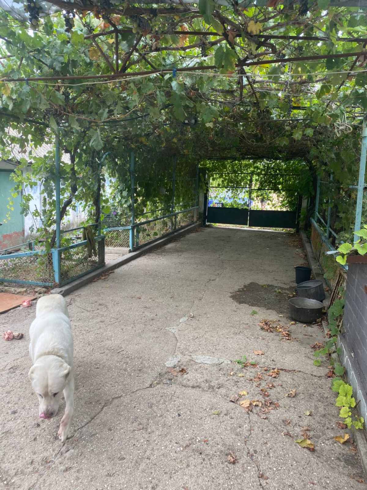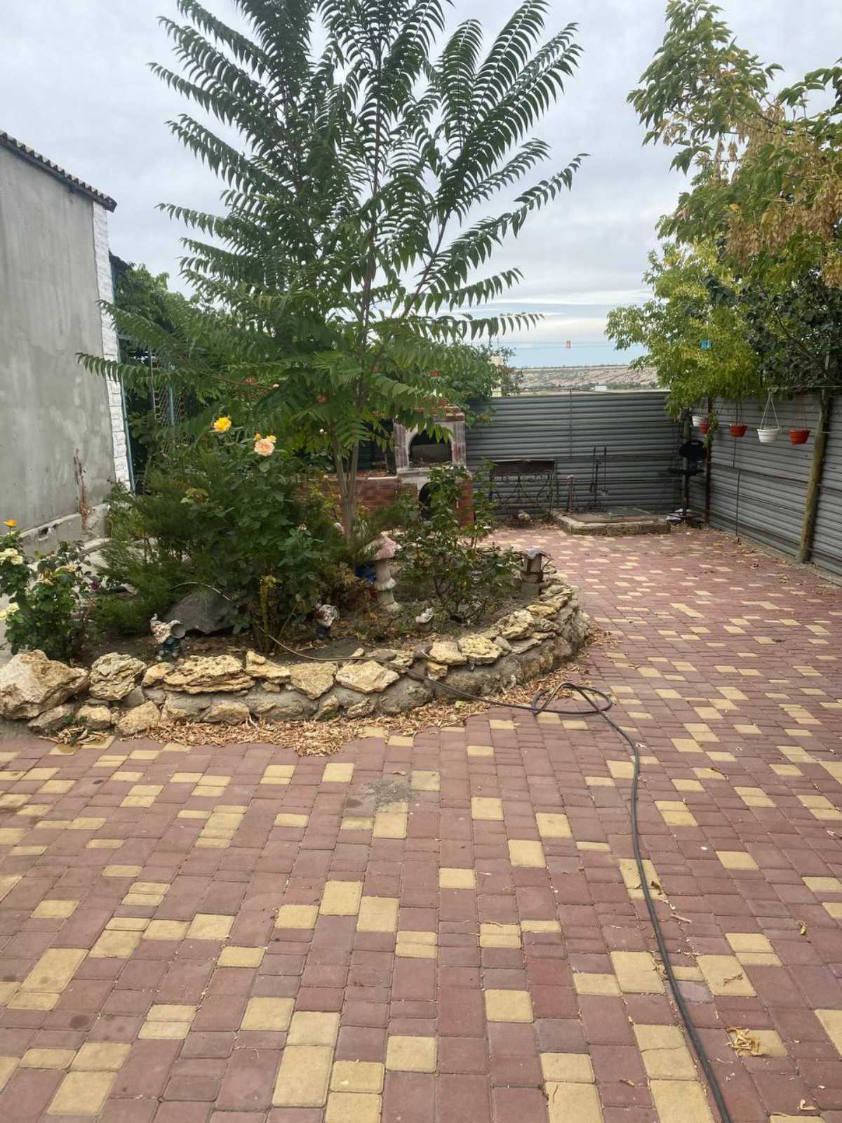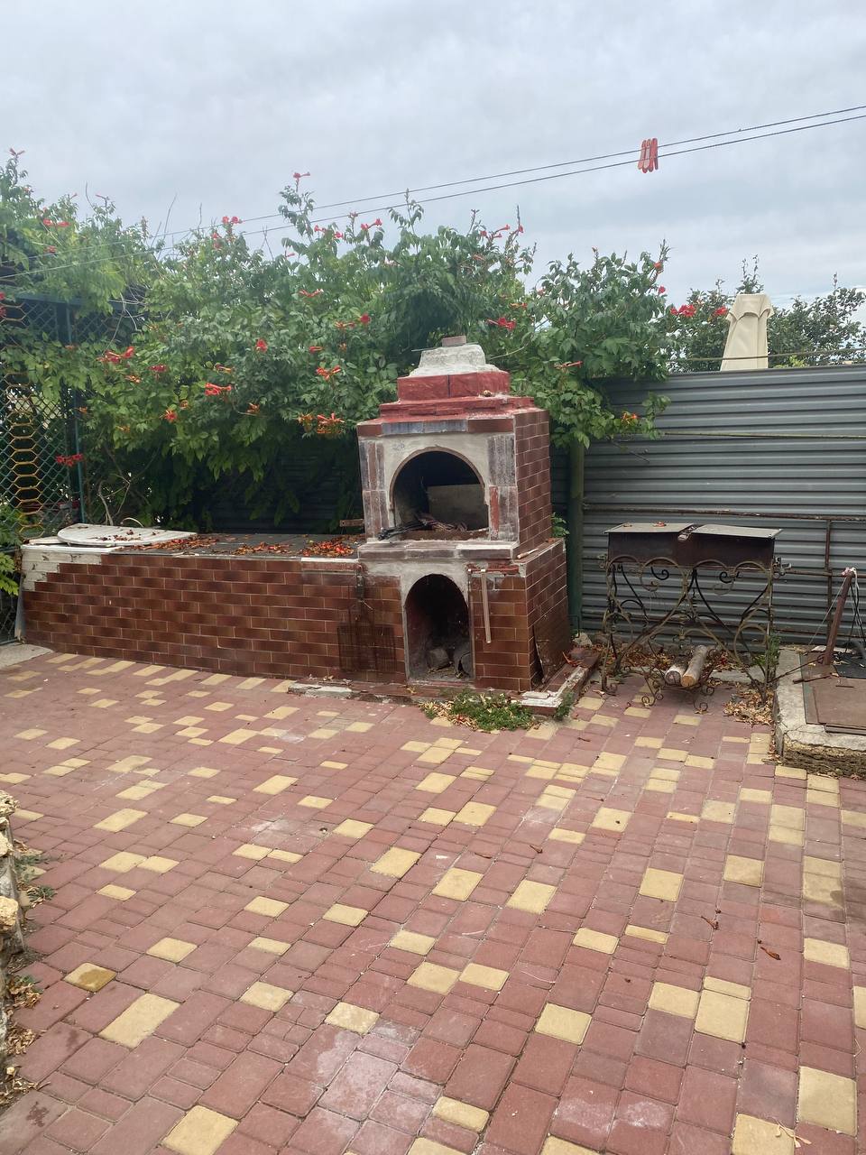 Во дворе мангальная зона (барбекю), виноградник, молодой сад. Двор выложен тротуарной плиткой.
