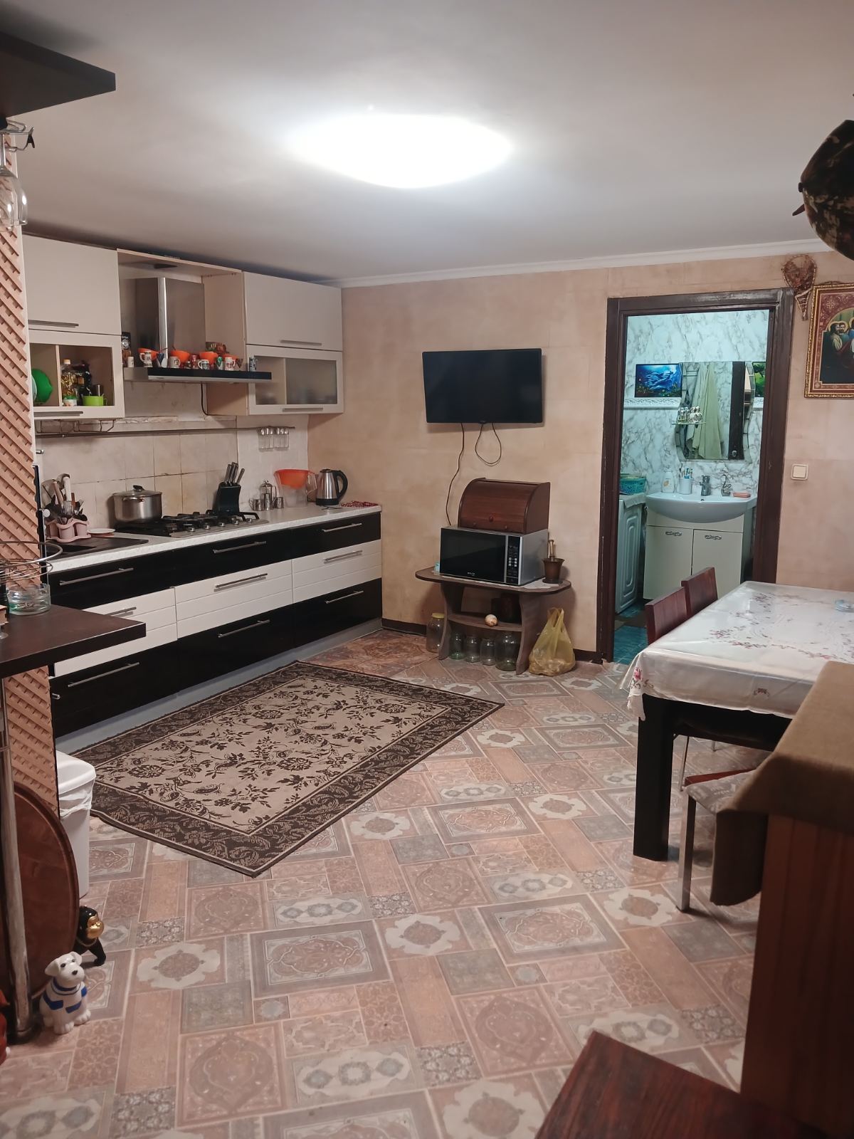 Общая площадь дома 100 кв.м. В доме три комнаты, коридор, просторная кухня и санузел.