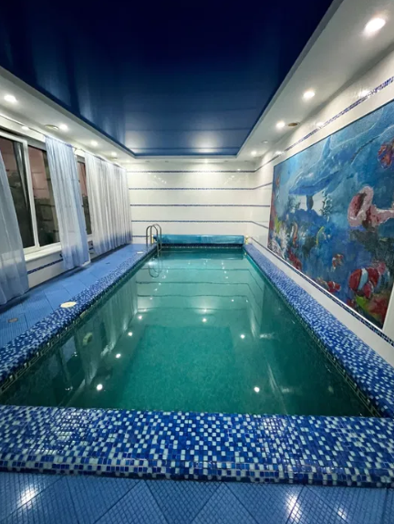 На території будинку тераса з барбекю, критий басейн з підсвічуванням 7х3 м; лазня на дровах з усіма зручностями.