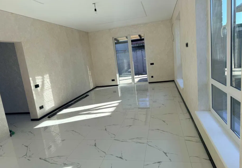 Современный ремонт в светлых тонах, система «тёплый пол», установлена сантехника.