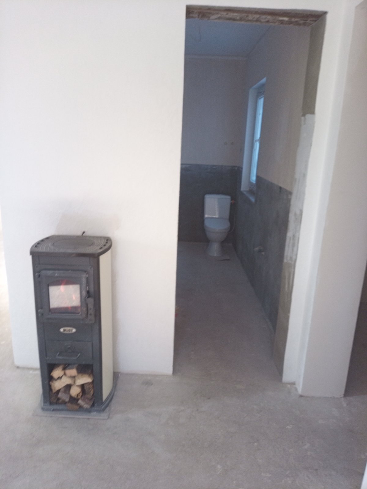 Отапливается дом буржуйкой (хватает на 70 кв.м.). В доме очень тепло, есть дрова!