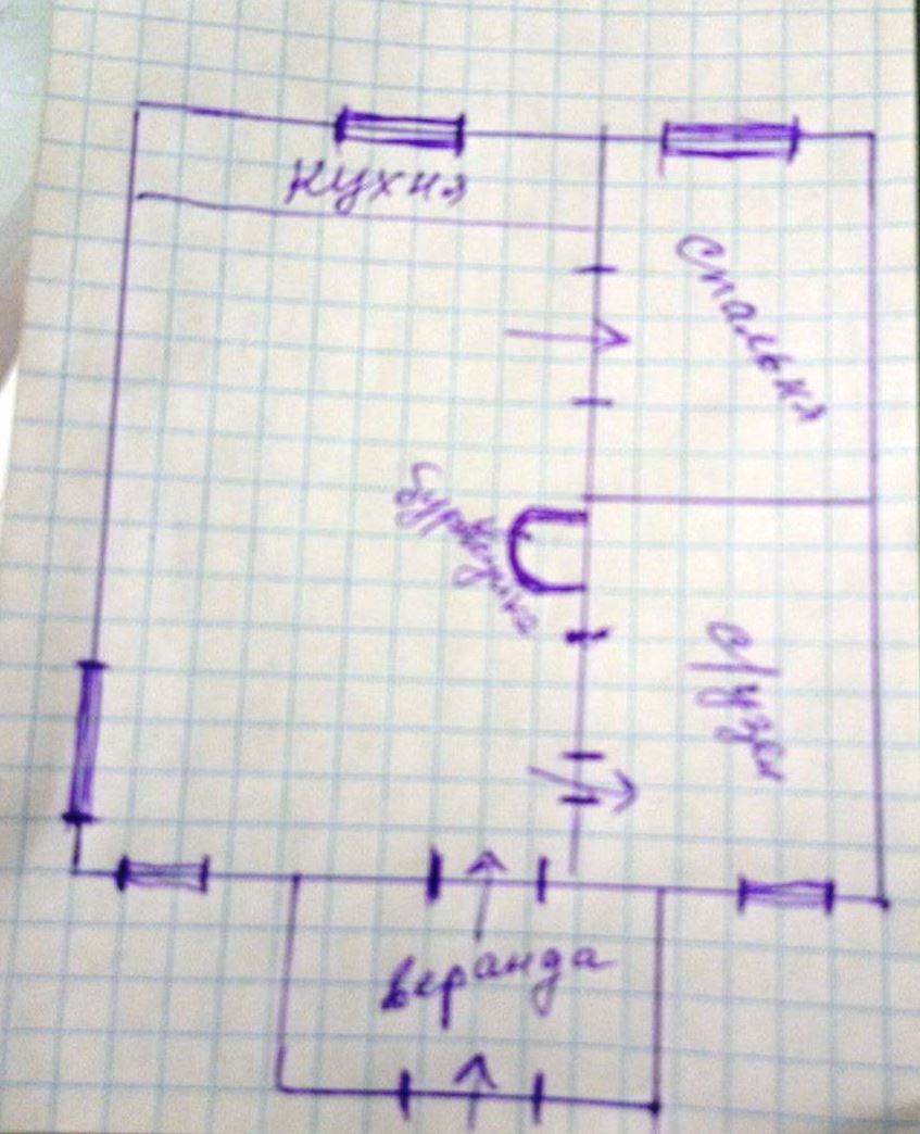 В доме кухня-студия 13 кв.м., спальня 12 кв.м., санузел (4 кв.м.) и коридор (4 кв.м.). Под спальней есть подвал 5 кв.м.