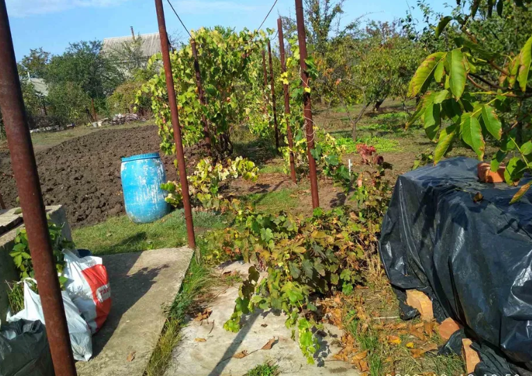 На участке имеется колодец для запаса воды (вода подаётся 4 раза в месяц), проведено электричество, ограждение сетчатое на столбах. Сад, виноградник и т.п. Участок ухожен.