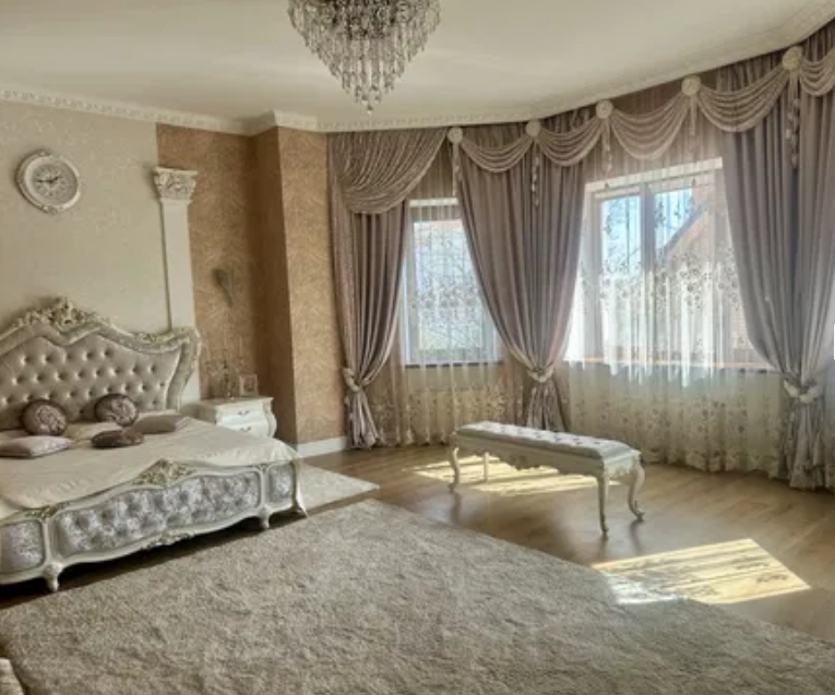 В доме кухня-столовая, 3 спальни, кабинет, 2 санузла, 2 гардеробные, котельная.