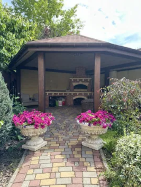 На участке гараж, альтанка, мангал, подсобные помещения, сад, огород, терраса, автоматические ворота.