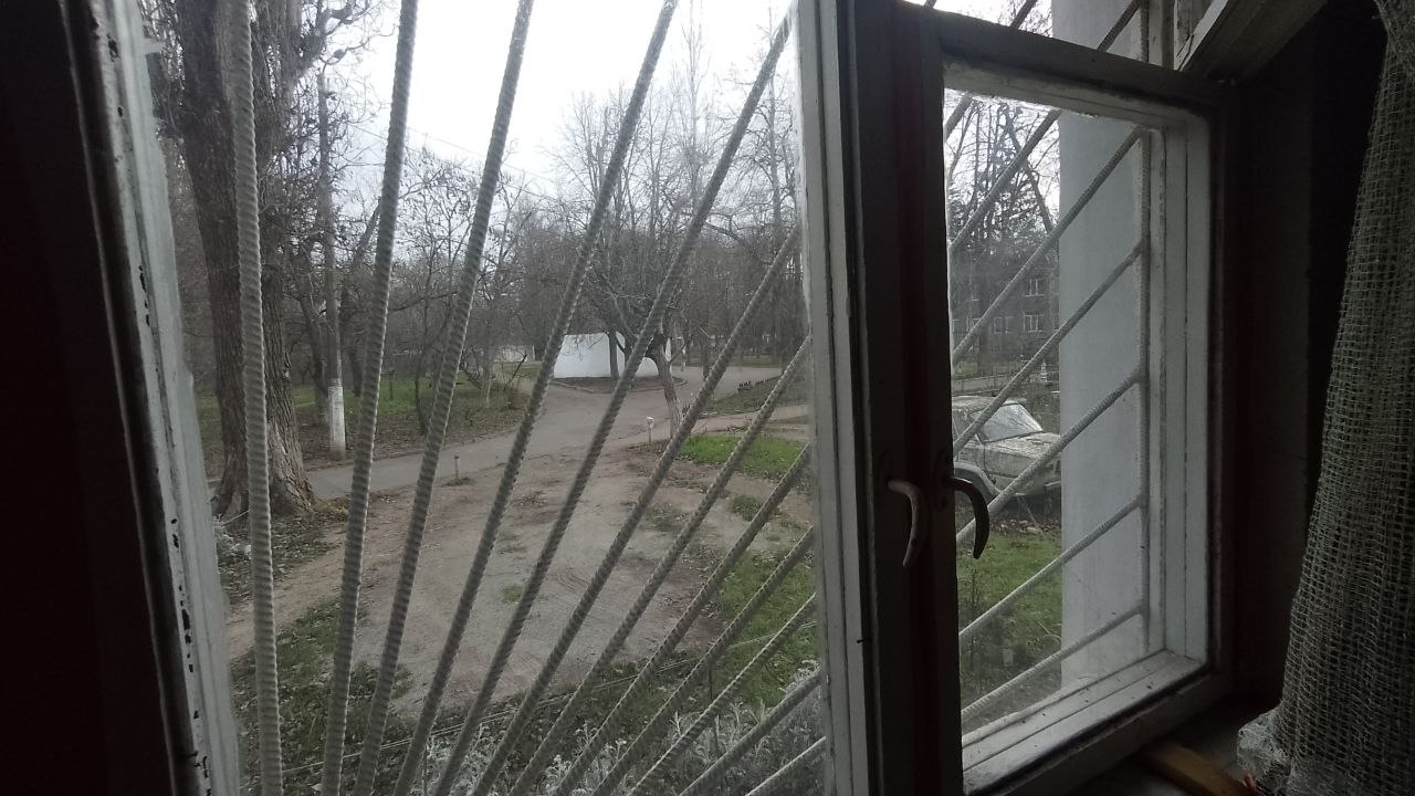 Четыре окна, выходят во двор, но в проходное место.