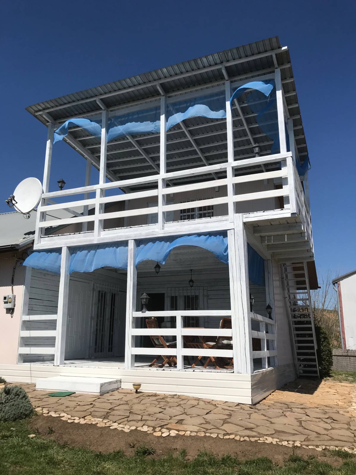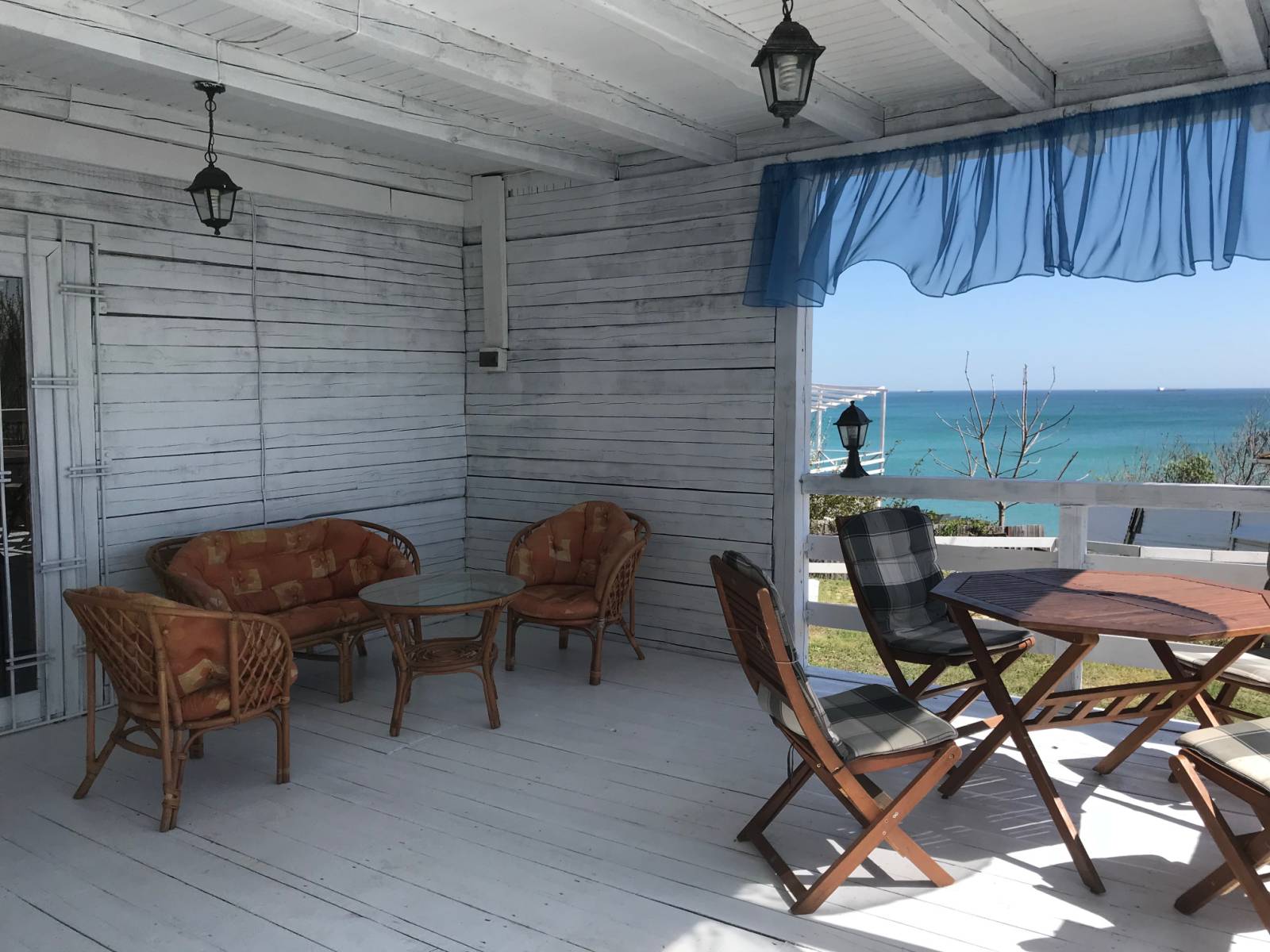Предлагаем современную двухэтажную дачу на берегу моря в Новой Дофиновке. Рсположена во второй линии моря. Панорама с любой точки участка 180 градосов.