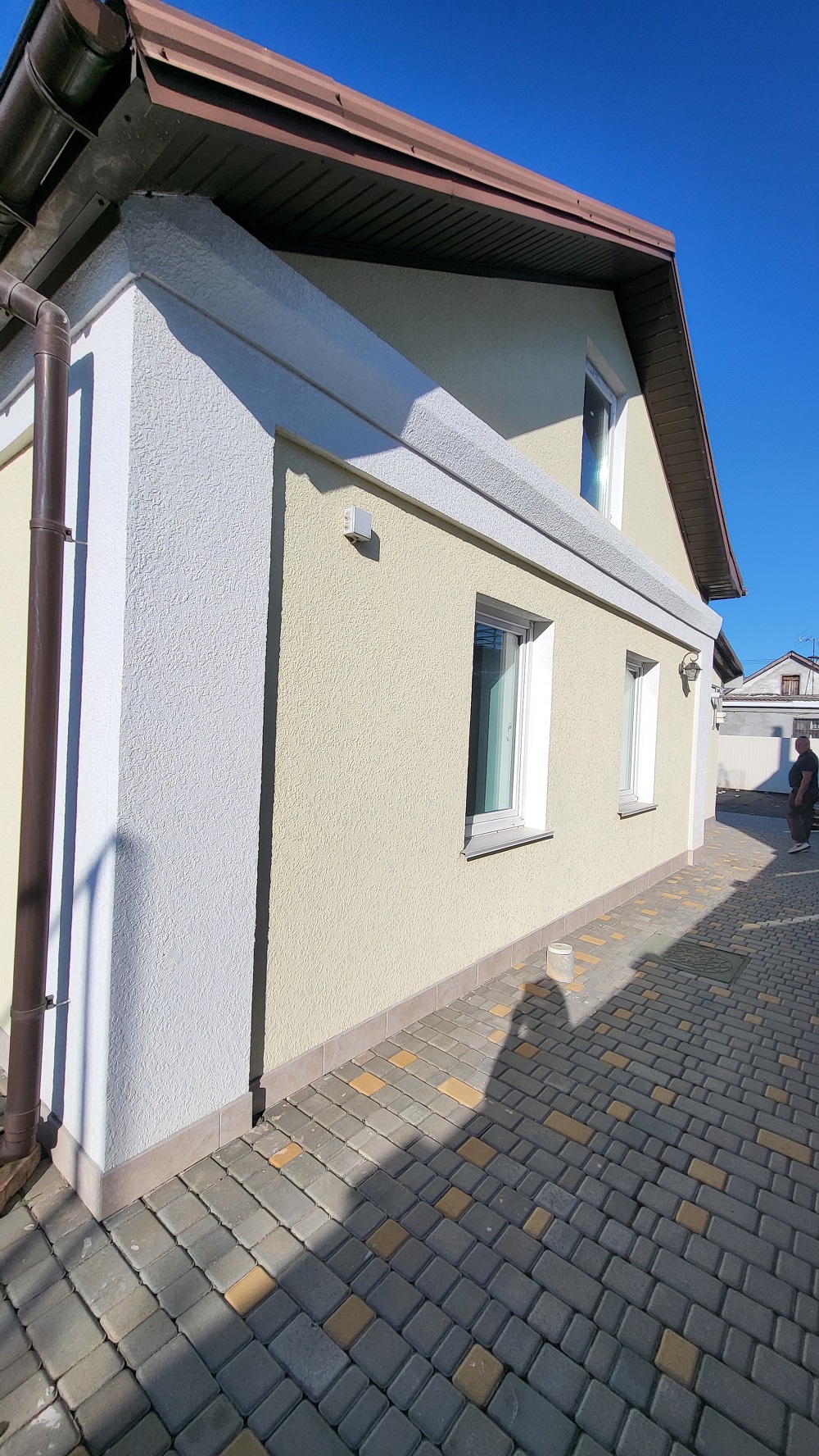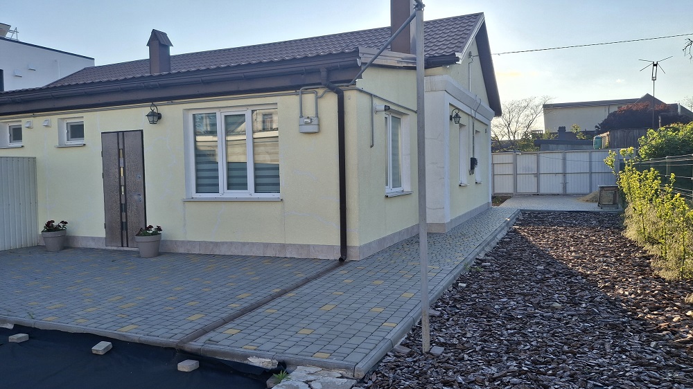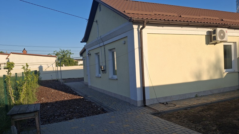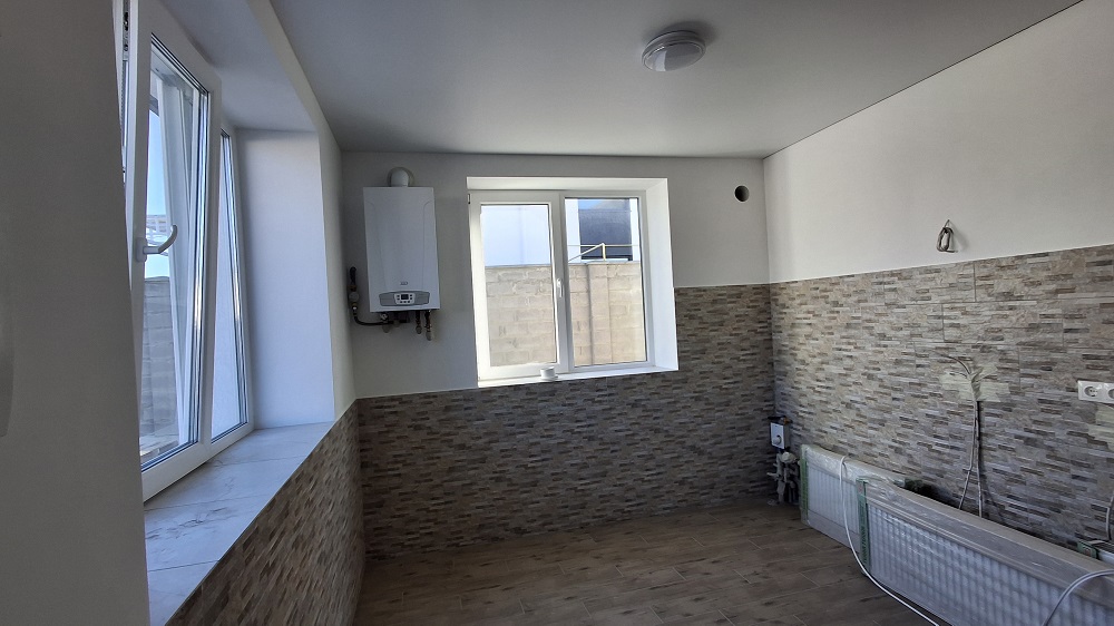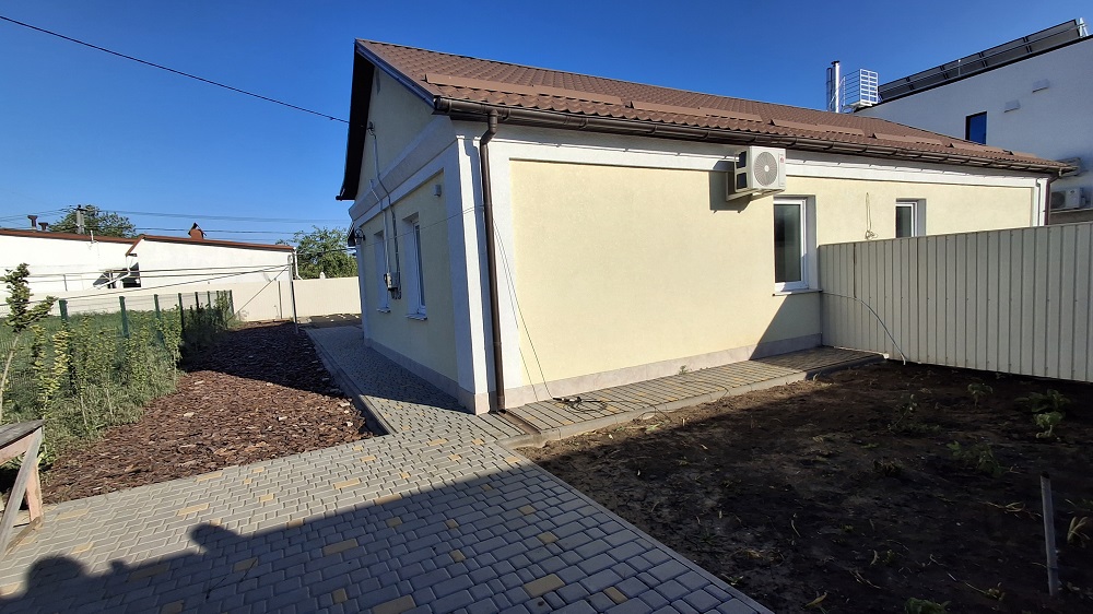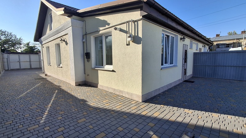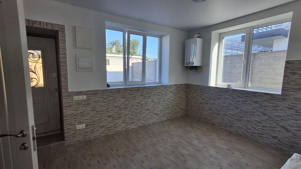 Дом поделён на 2 равные половины, каждая из которых автономна площадь по 54м2 каждая, со своим отдельным въездом, воротами и калиткой. У каждой половины 3,2 сотки (наружный и внутренний двор) каждая половина имеет: кухню 14м2, совмещённый санузел 5м2 с душевой кабиной, гостиная 18м2, 2 спальни по 9м2, тёплый водяной пол на кухне и в санузле. Каждая половина дома имеет свой 2-х контурный котёл (BAXI, газовый, Италия) ,отопление (стальные радиаторы). Установлены 3-х камерные металлопластиковые окна. Бронированные входные двери, фирмы Straj, замки Motura. Сделана идеальная стяжка под ламинат или паркет. Электропроводка выполнена качественно, автоматика и щитки фирмы Hager. Крыша металлочерепица, фасад дома отштукатурен, нанесён короед и покрашен. Каждая половина дома имеет площадку под авто, двор выложен тротуарной плиткой. Въезд на территорию не фасадный, имеет автоматические ворота, территория участка ограждена забором, много свободной земли под озеленение. Закрытая охраняемая территория Возможность продажи как всего дома, так и половины. Имеется большая полноценная выгребная яма. Тихое место расположение. Закрытая охраняемая территория на несколько семей.