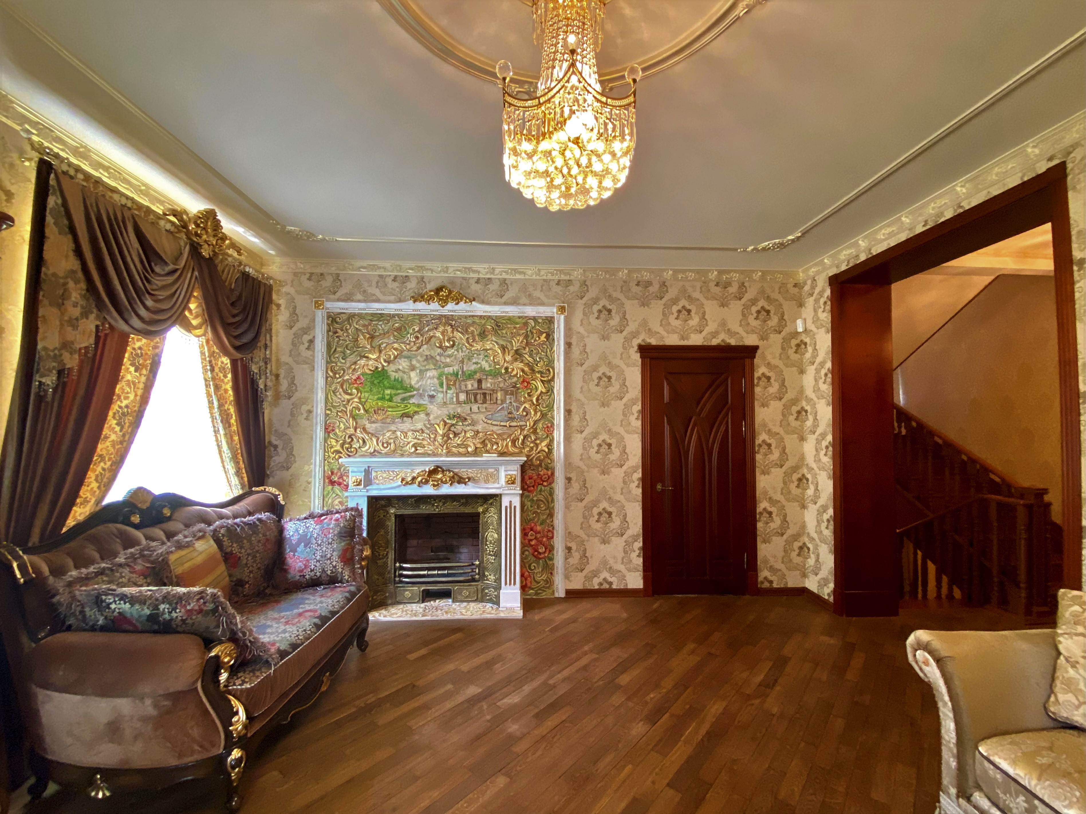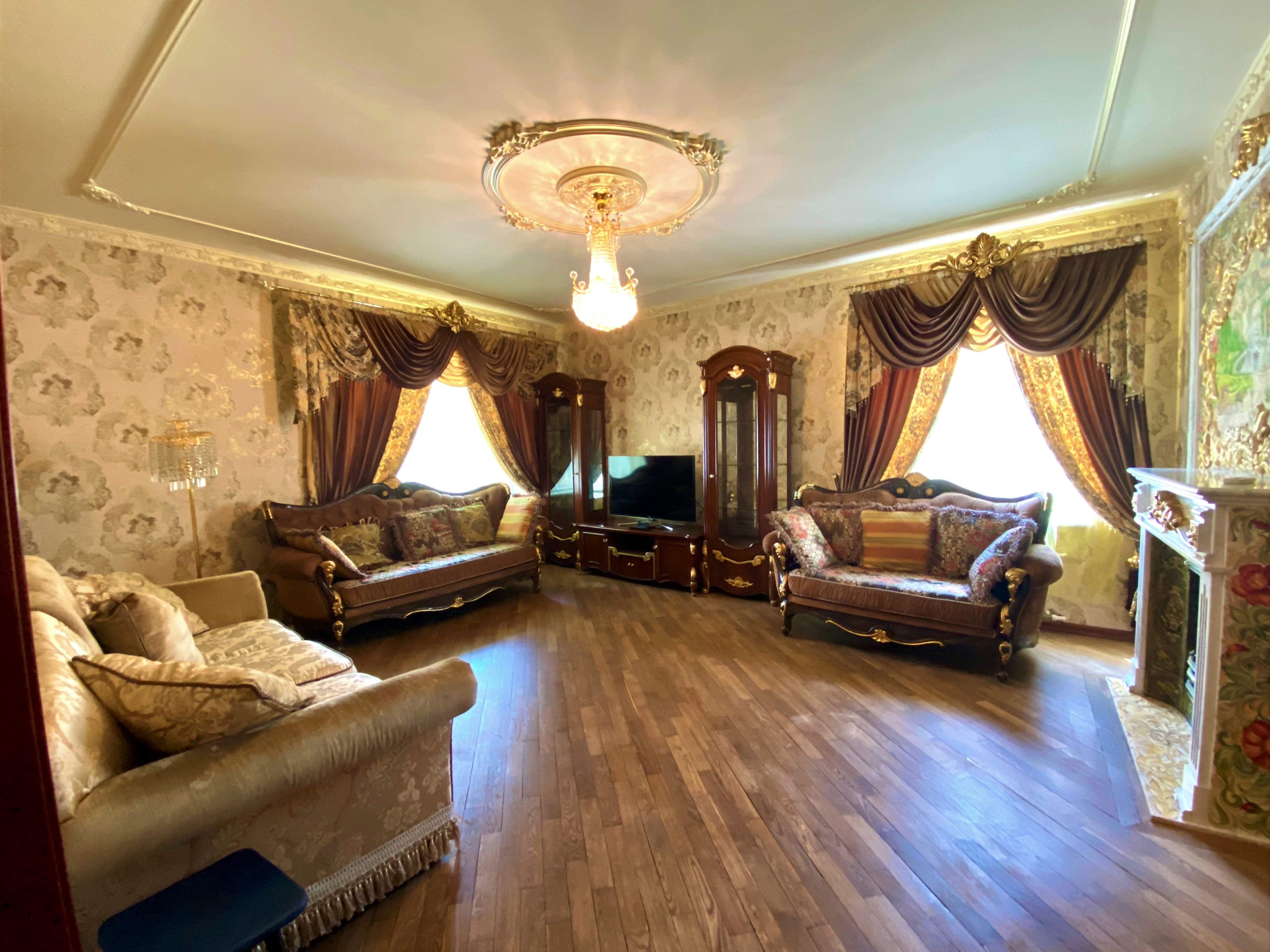 Отделка интерьера сусальным золотом, бархатом, шелком, хрусталем, венецианской штукатуркой и деревом. Новая дорогая техника, новая дорогая мебель, новая дорогая фурнитура и аксессуары.