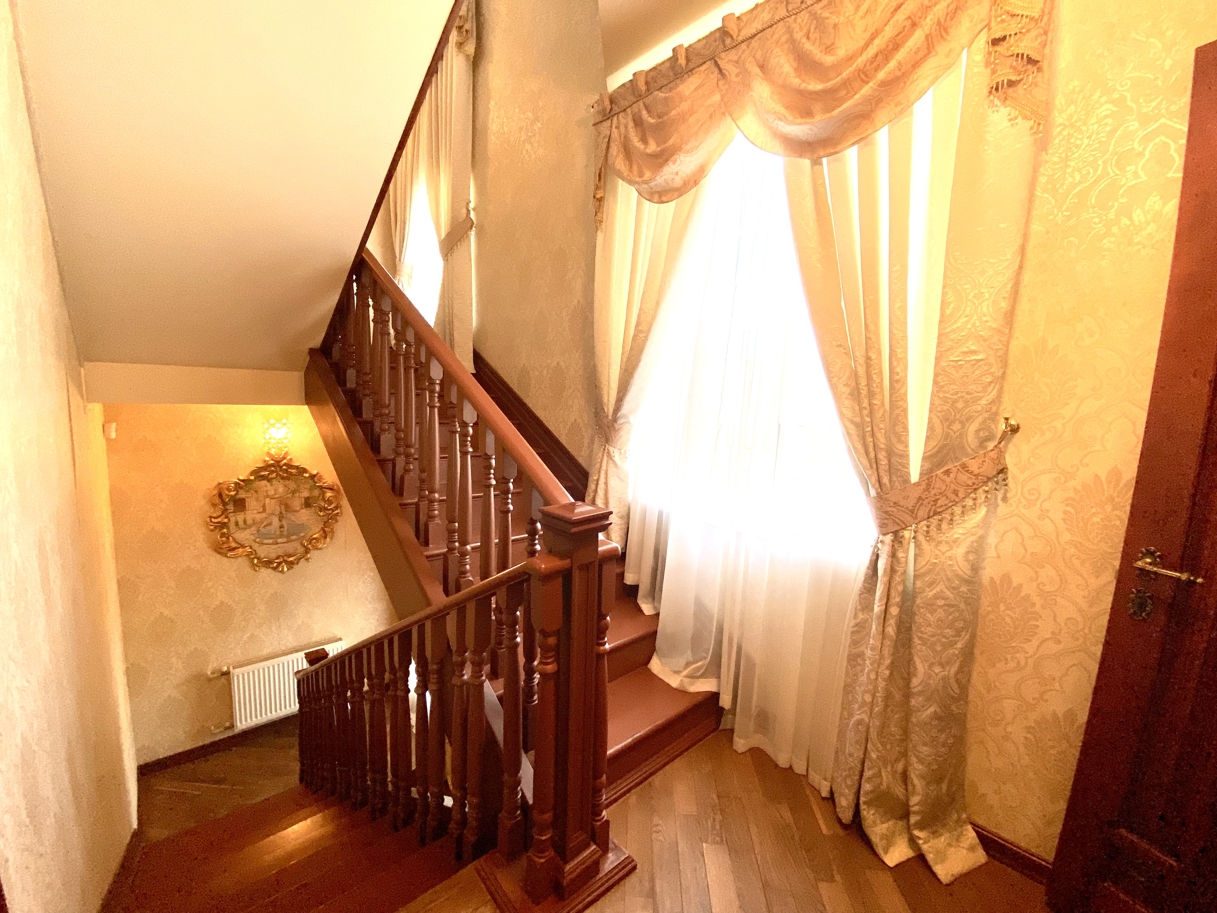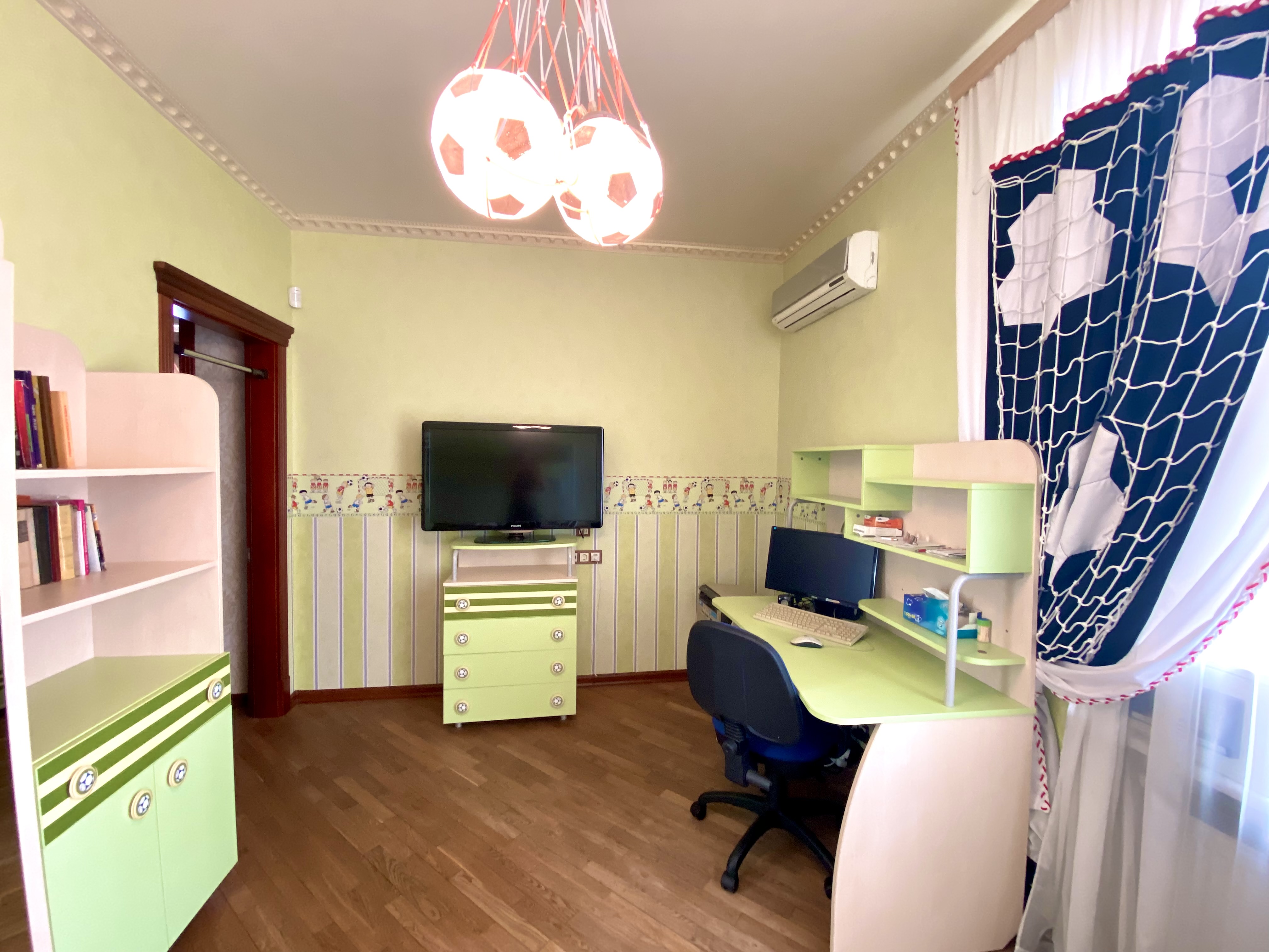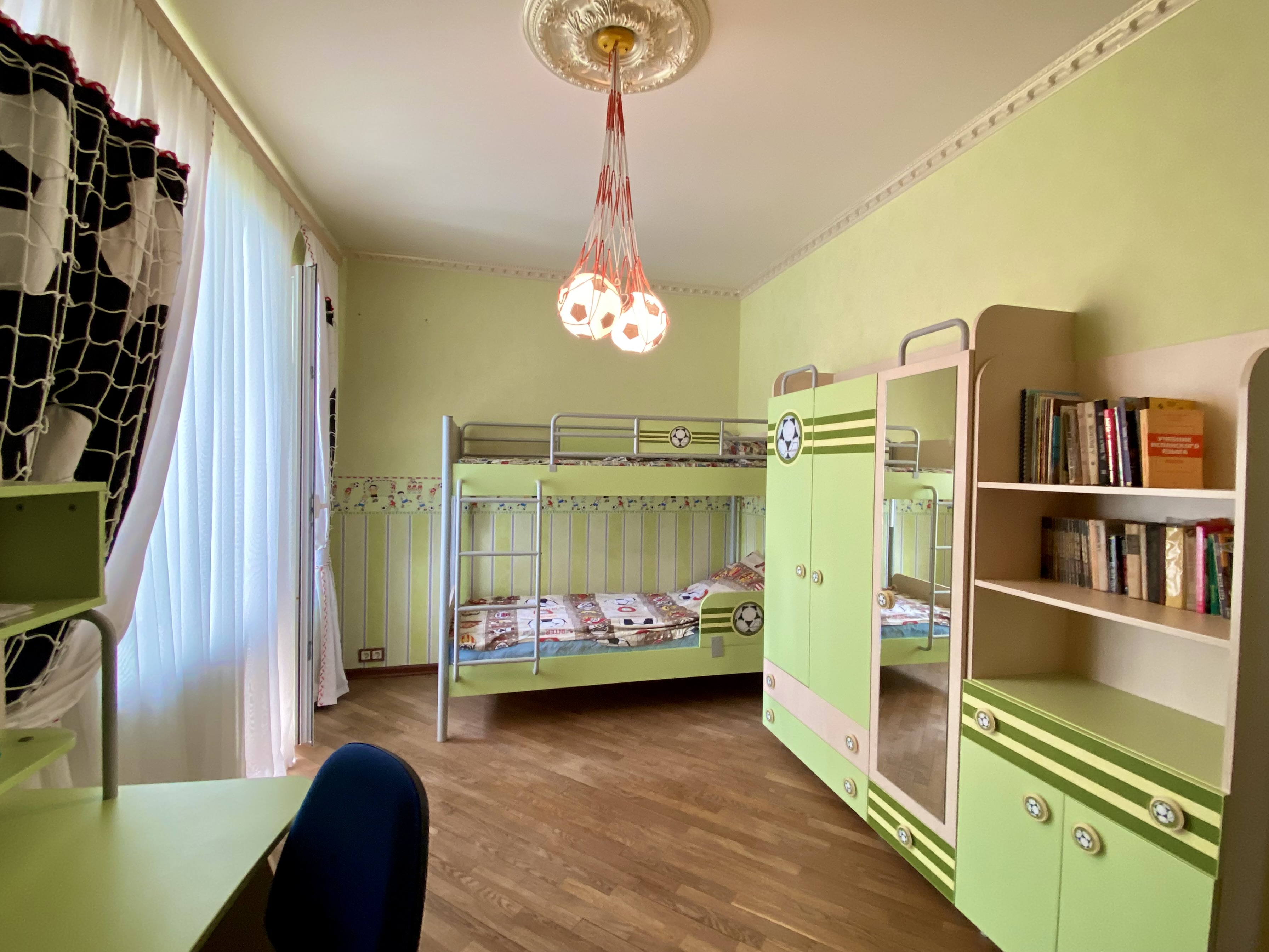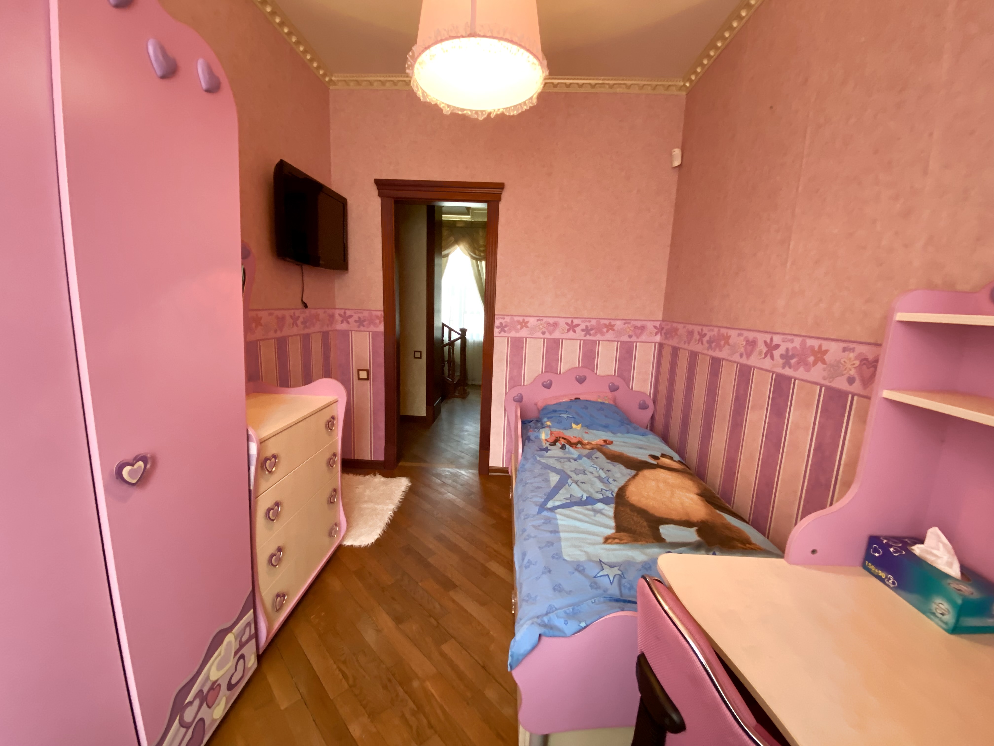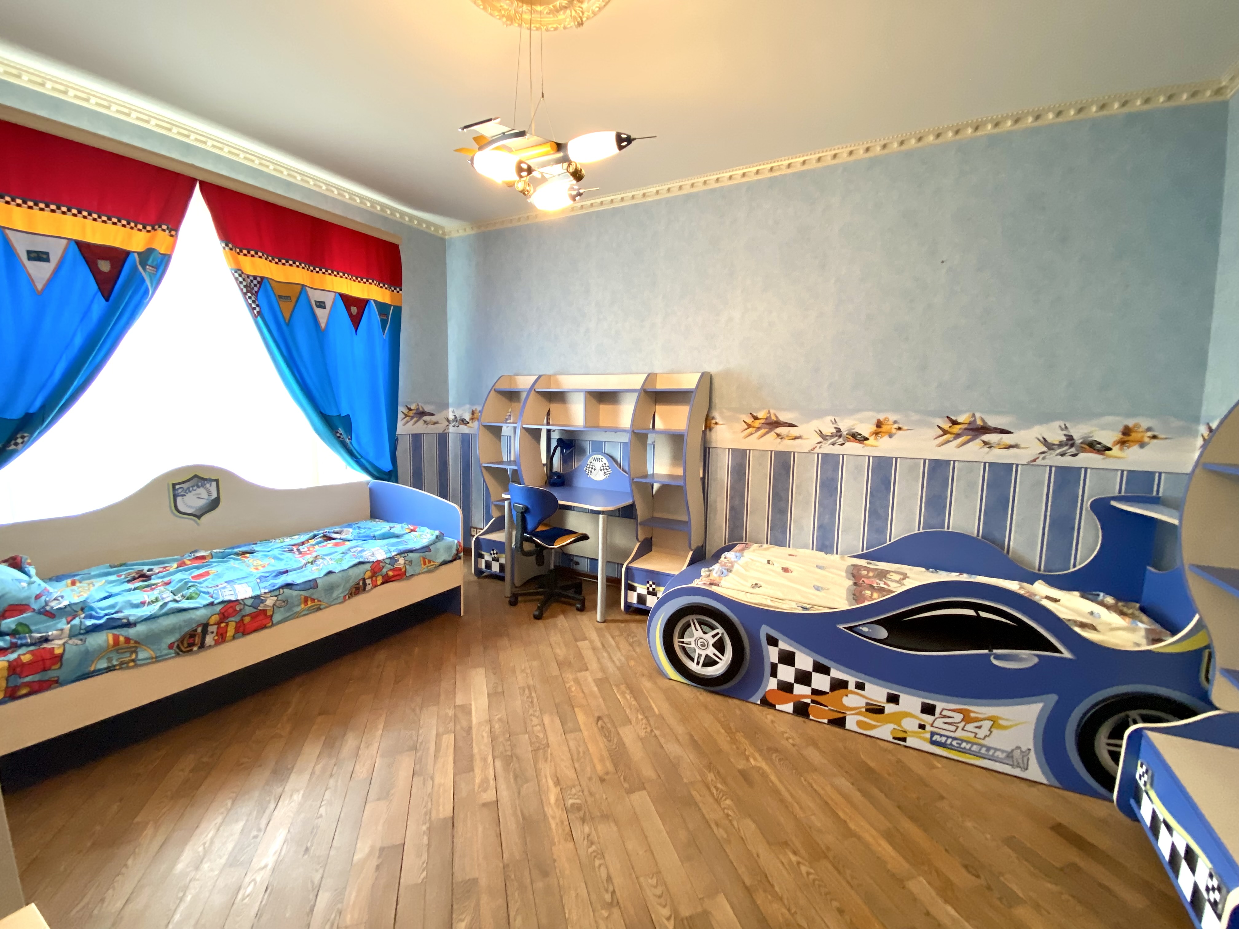 Общая площадь дома 260 кв.м.: 3 детские комнаты, 2 спальни, гостевая комната, гостиная, 3 ванных комнаты, 4 гардеробные, сауна и кладовая.