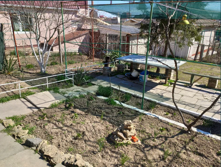 До ЖД станции "Каролино-Бугаз" ~150 м. До базара, магазинов, аптеки, почты и центра поселка ~1 км, до моря ~1 км (огромные, чистые, дикие пляжи).