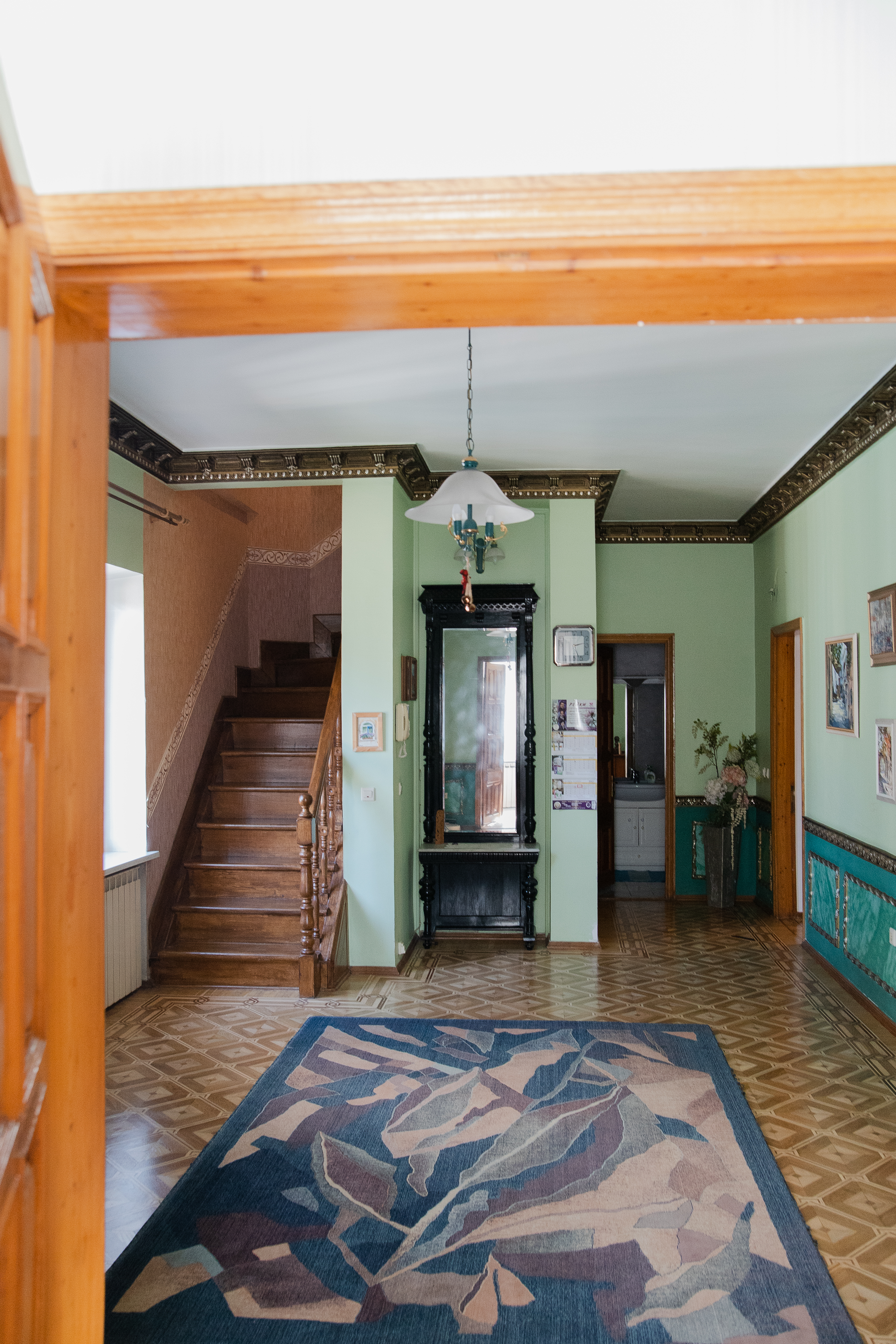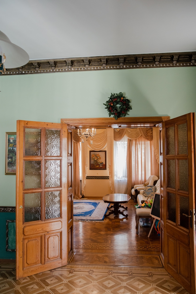 Тёплый дубовый паркет, лепнина на потолках, изящные детали и камин создают по-настоящему домашнюю атмосферу. Здесь всё говорит о вкусе, заботе и любви к дому.