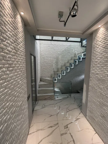 Дом с подвалом под всем домом. Вода 3 куба - всегда в резерве, генератор, камин действующий (обогревает пол дома), теплый пол, автонавес, автоматические ворота, сигнализация, видеонаблюдение, разведена музыка по дому, видео/аудио звонок - все управление с телефона и много интересного.