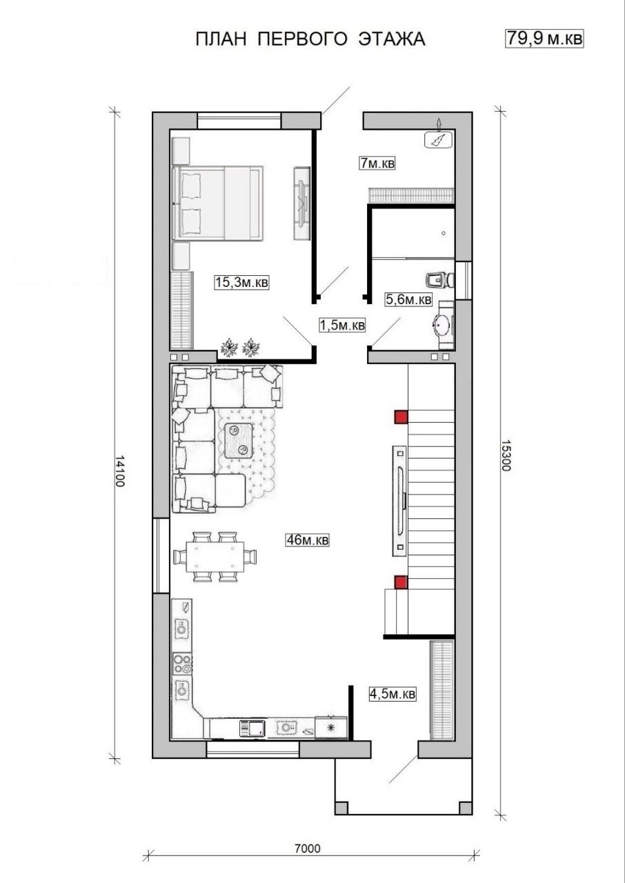 Продуманная планировка: 4 светлые спальни, включая мастер-спальню со своим санузлом и гардеробной. Просторная кухня-столовая около 40 м² с панорамным выходом на террасу и зону отдыха.