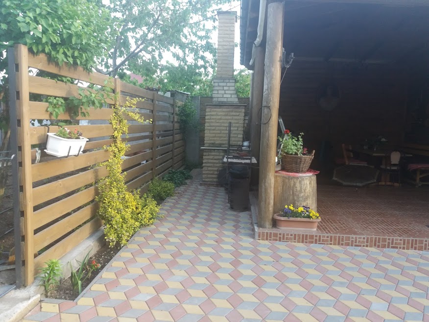 На участке есть гостевой дом - кухня, гостиная, санузел, в нем двухуровневый подвал с прачечной, запасом воды, укрытием.