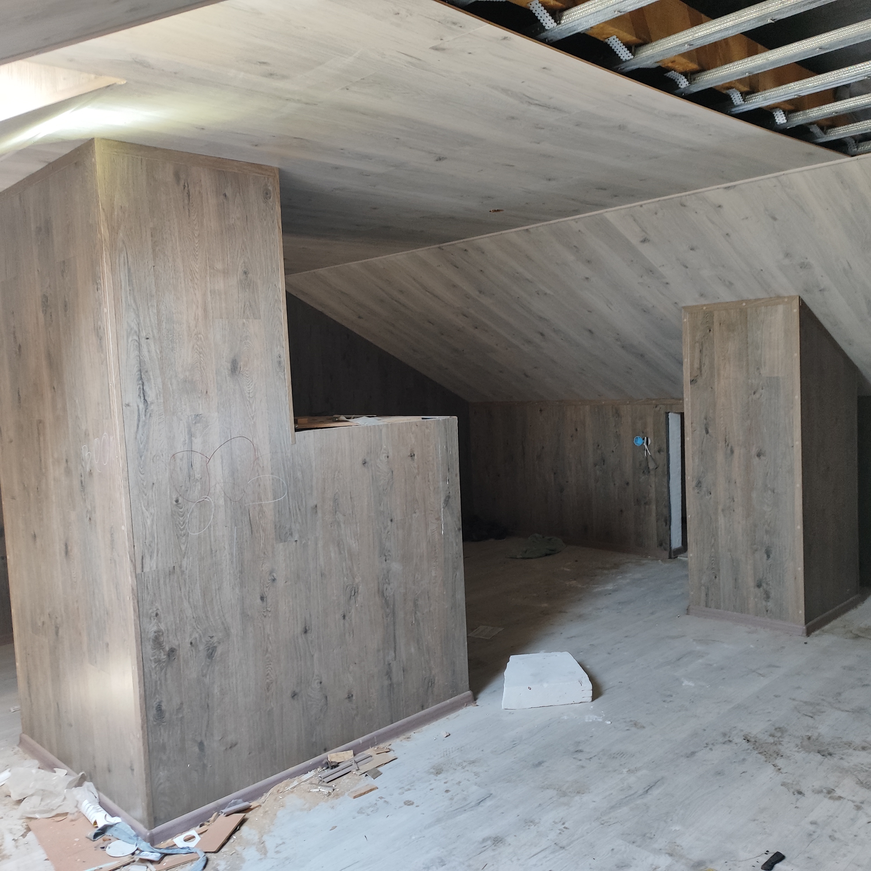 первые этажи - кухня - 30метров, комнаты, место под санузел, вход в гараж,