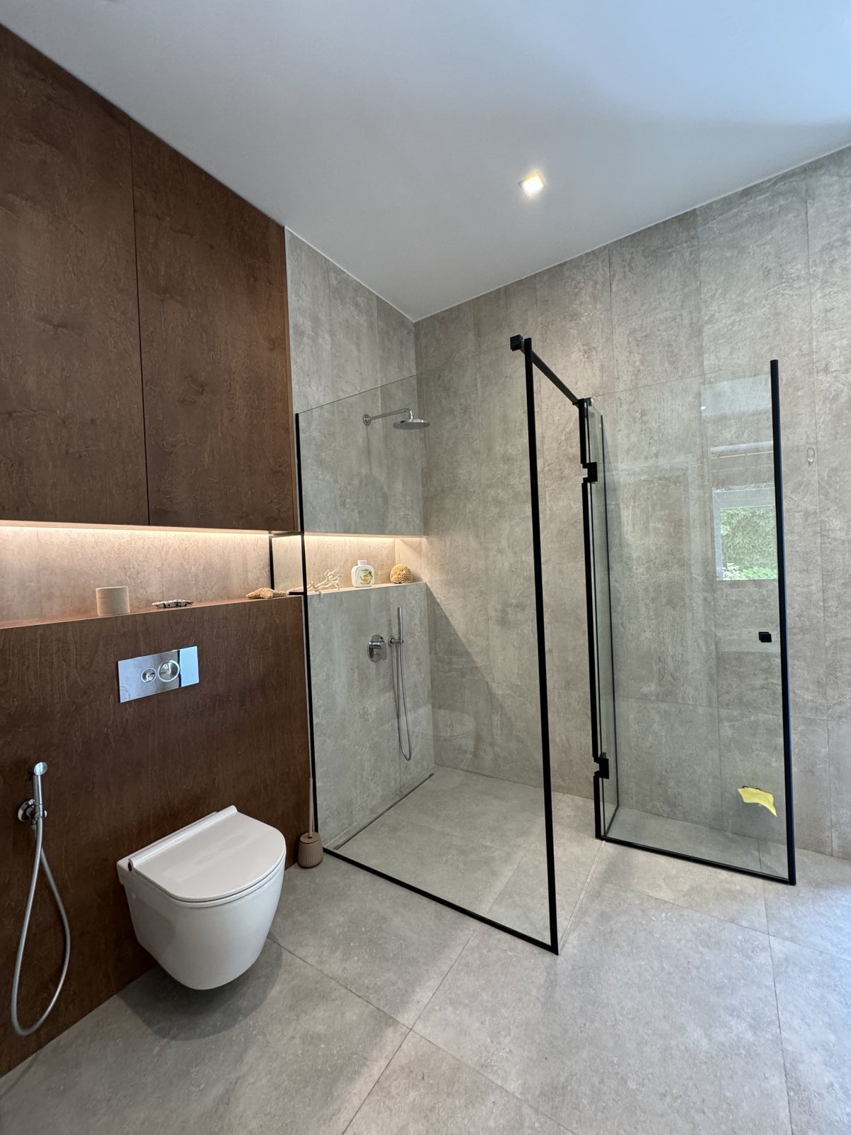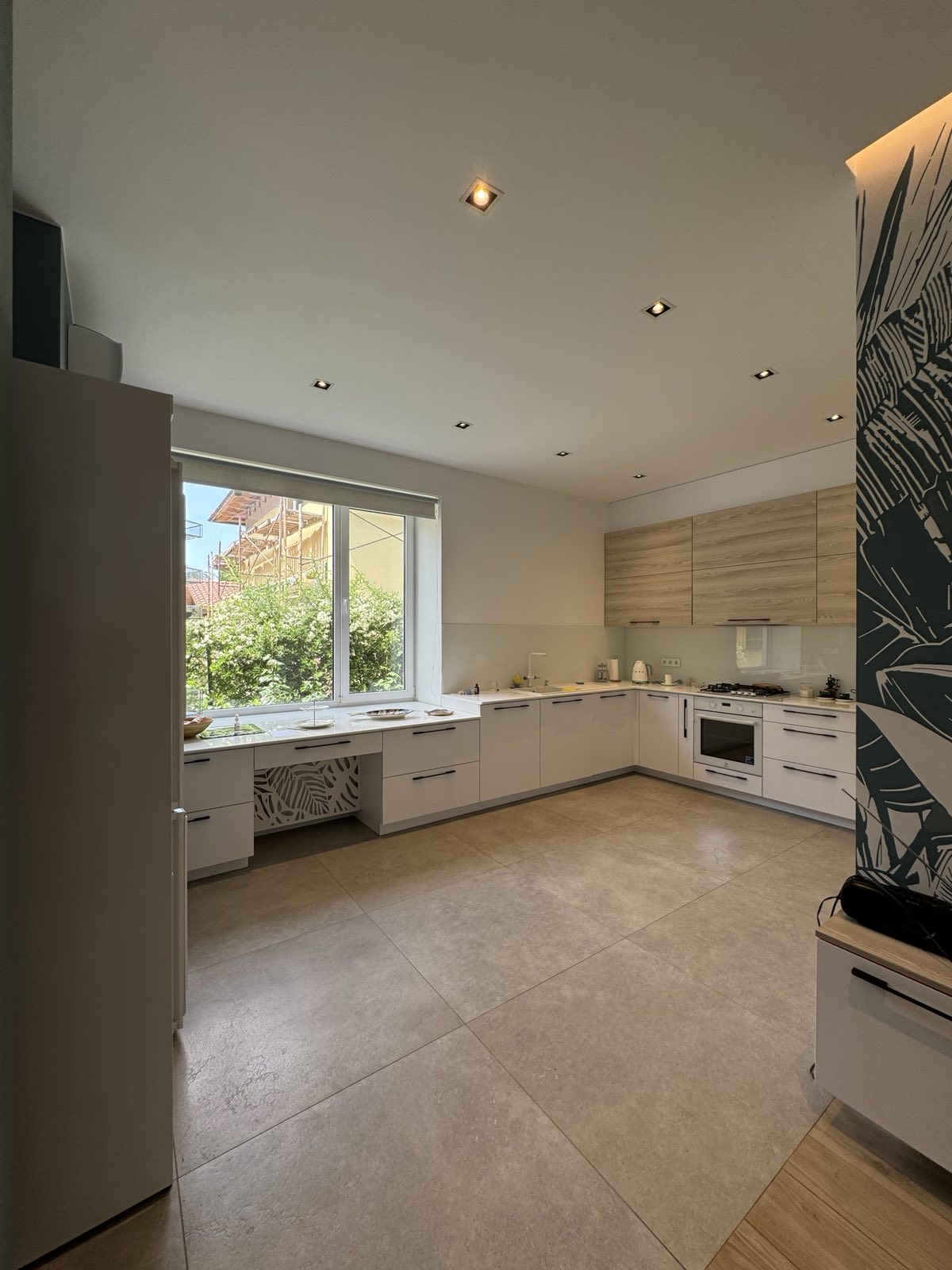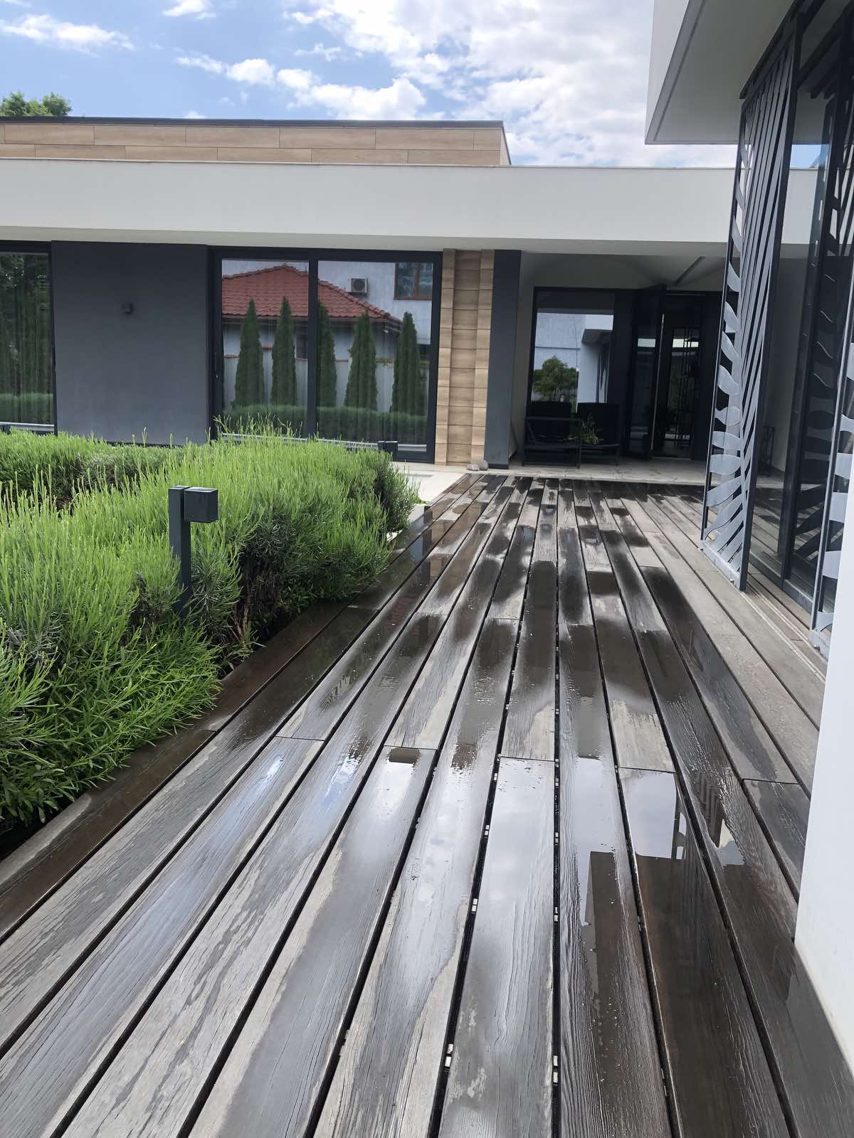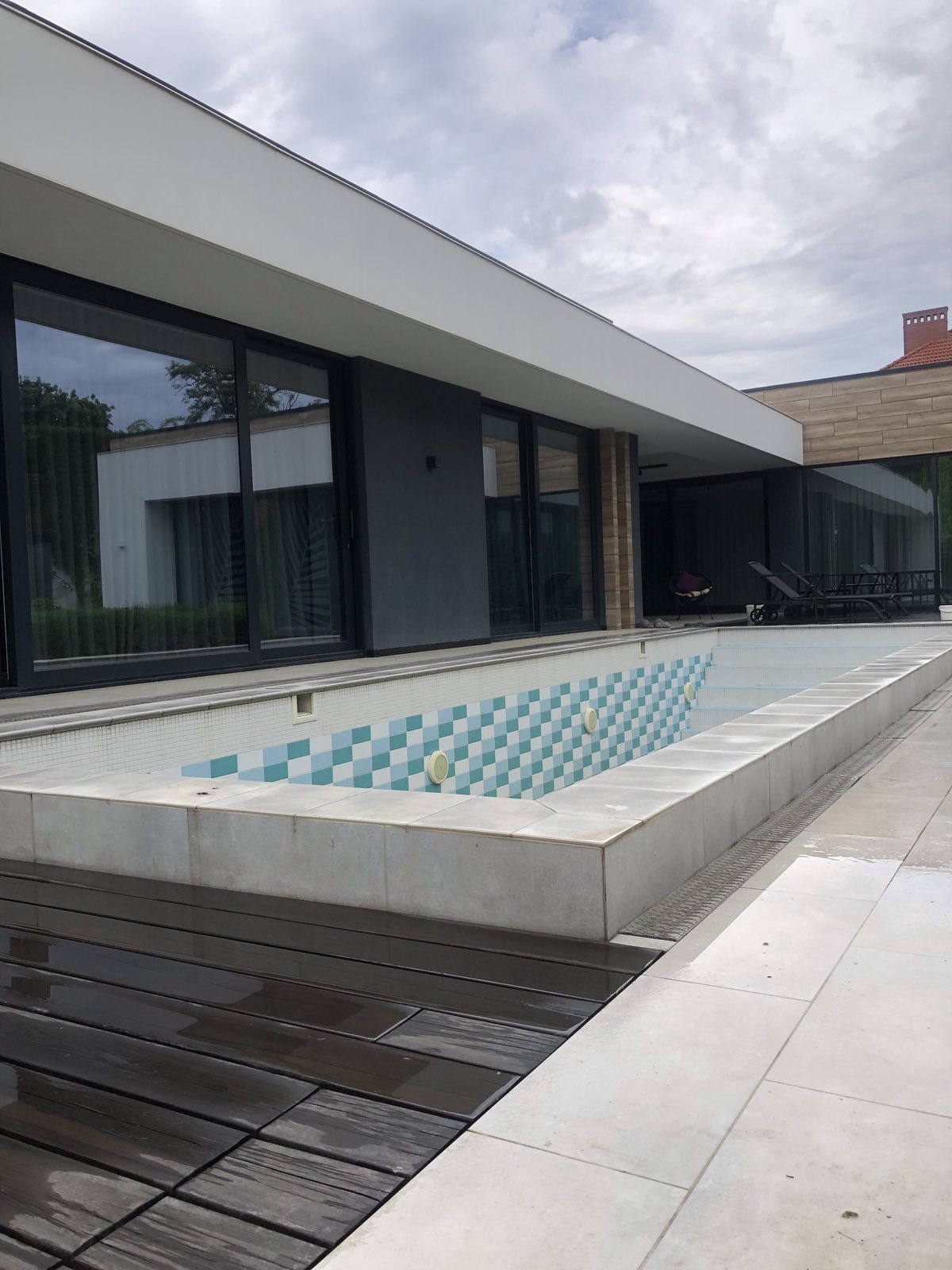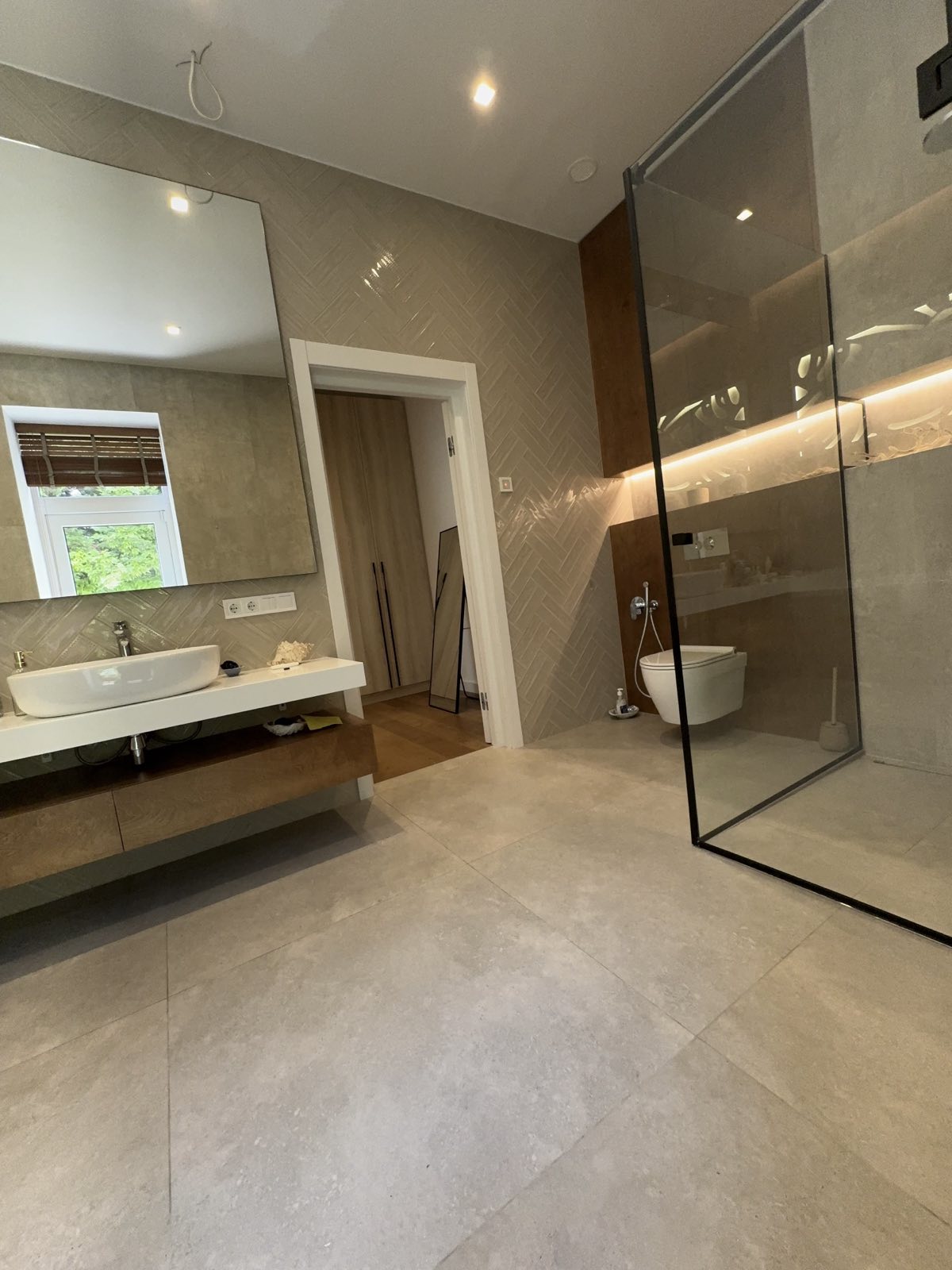 Все очень стильно, просторно и современно. Из каждой спальни свой выход на участок, при этом есть подсобные помещения разного назначения.