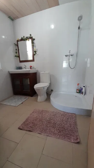 В доме 2 комнаты (6 спальных мест), две террасы, кухня и санузел. Есть летний душ.