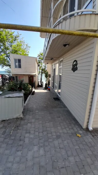 Прямой вид на море (второй ряд), находится в зелёной зоне, улица выложена плиткой хороший подъезд к домику.