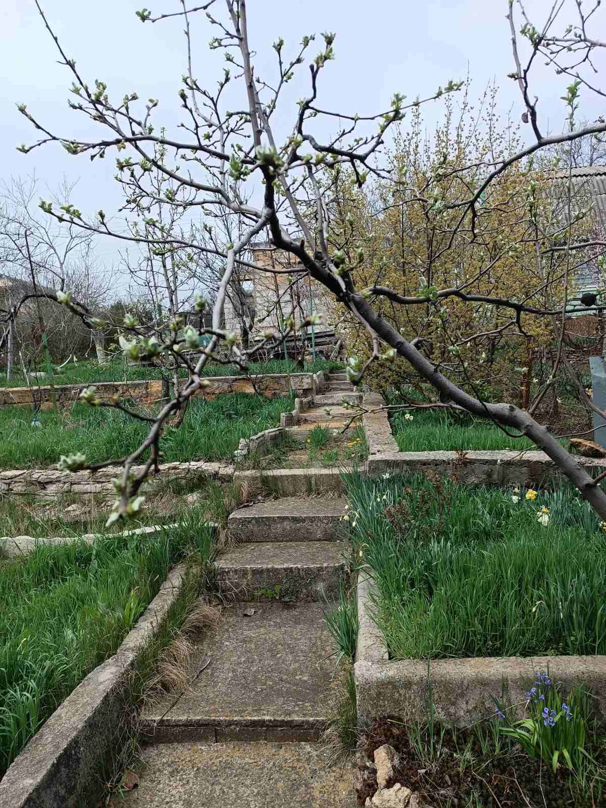 На участке 5 соток плодовые деревья, кустарники, виноград, огород.