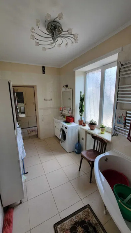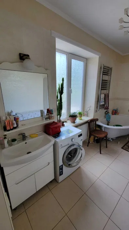 – Просторный санузел 11 м² с угловой ванной и стиральной машиной