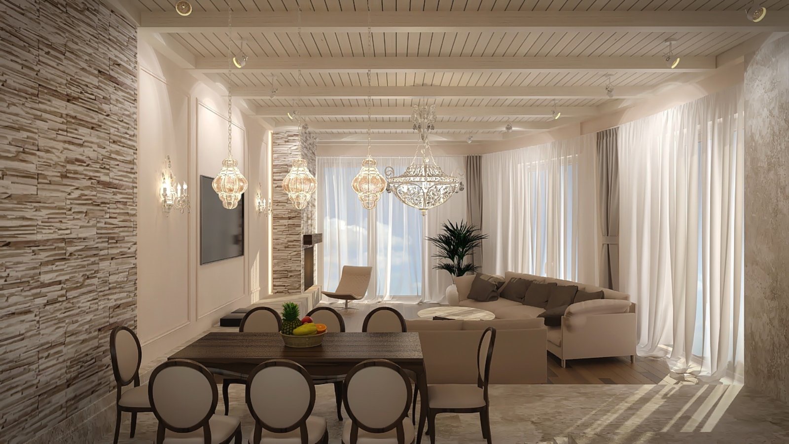 - Интерьер выдержан в современном стиле с элементами минимализма, и спокойной бело-пастельной гамме. Красивые акценты: натуральный мрамор в отделке, мраморная лестница и интересные элементы в отделке, создают неповторимый уют гармонию.