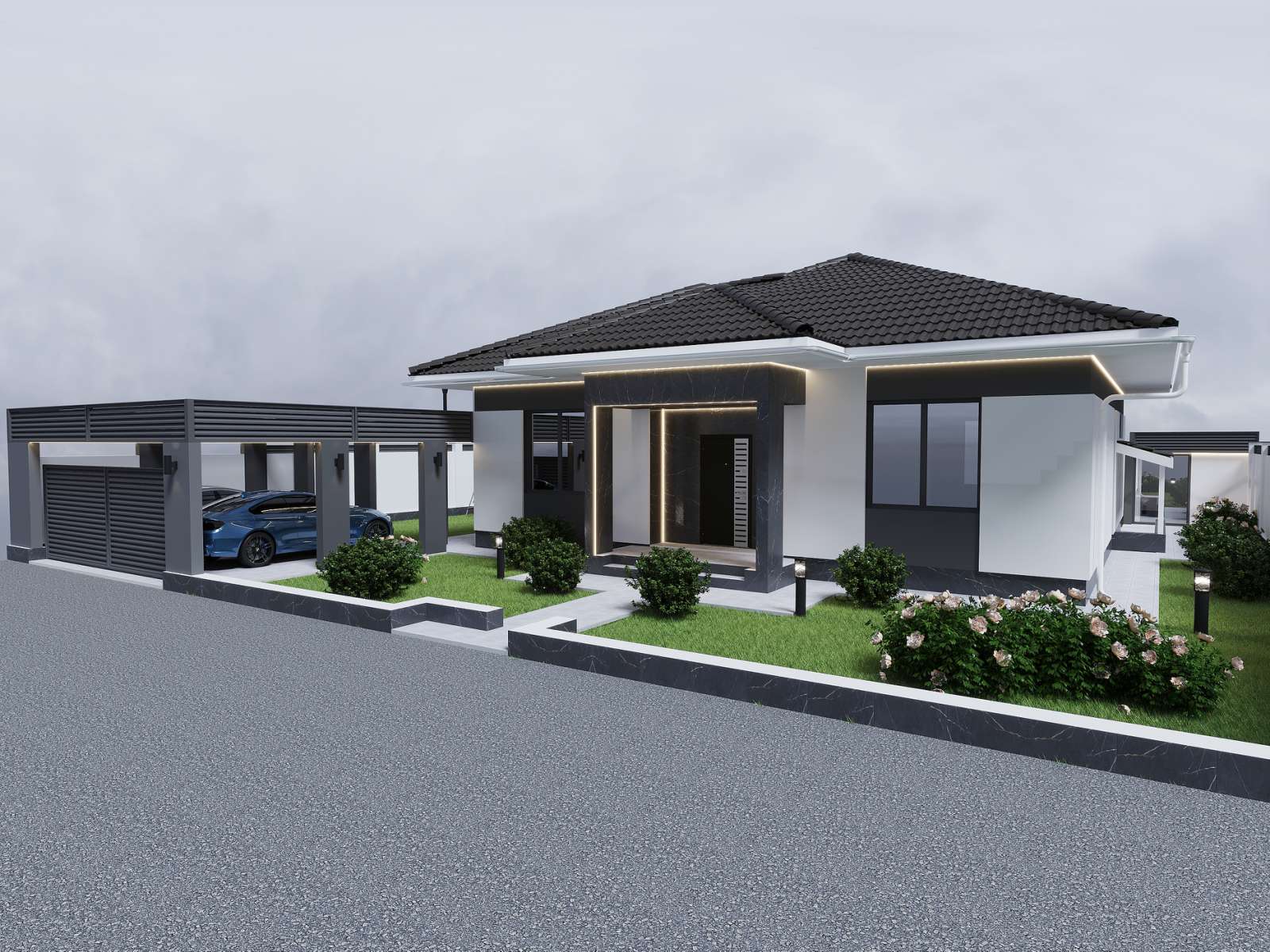 Это одноэтажный жилой дом, построенный с использованием энергосберегающих технологий, авторским дизайном и чистовой отделкой.