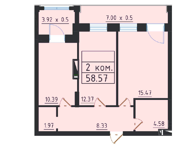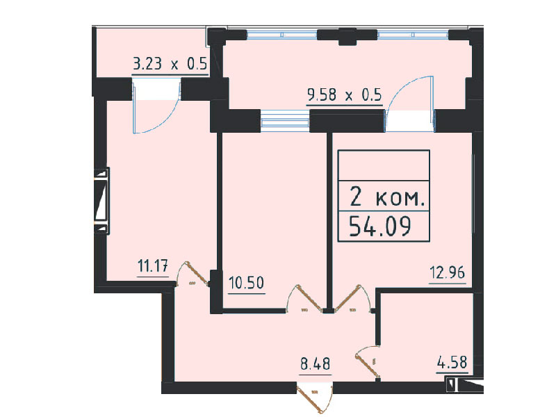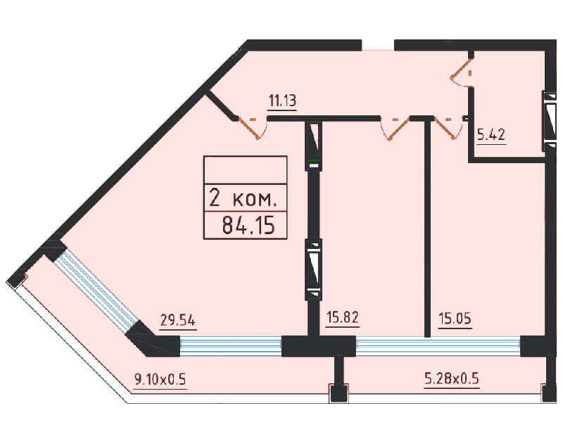 Внутренними перестенками в квартирах выделяются только санузлы. Также в каждой квартире устанавливаются пластиковые стояки с установкой отвода для подключения системы внутренней канализации.