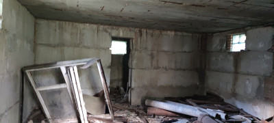 На участке цоколь (бомбоубежище) гараж, капитальный, можно строить дом.
