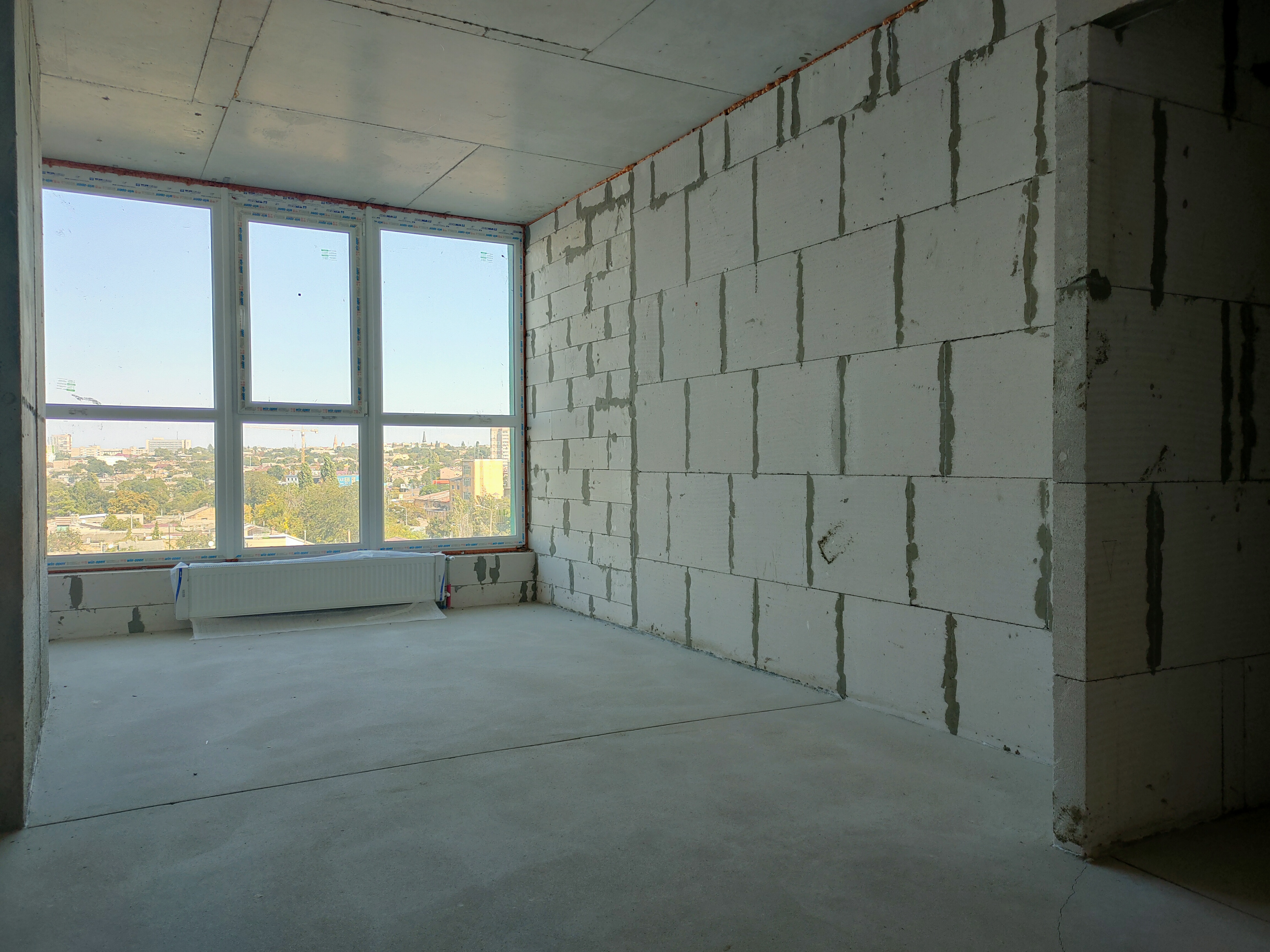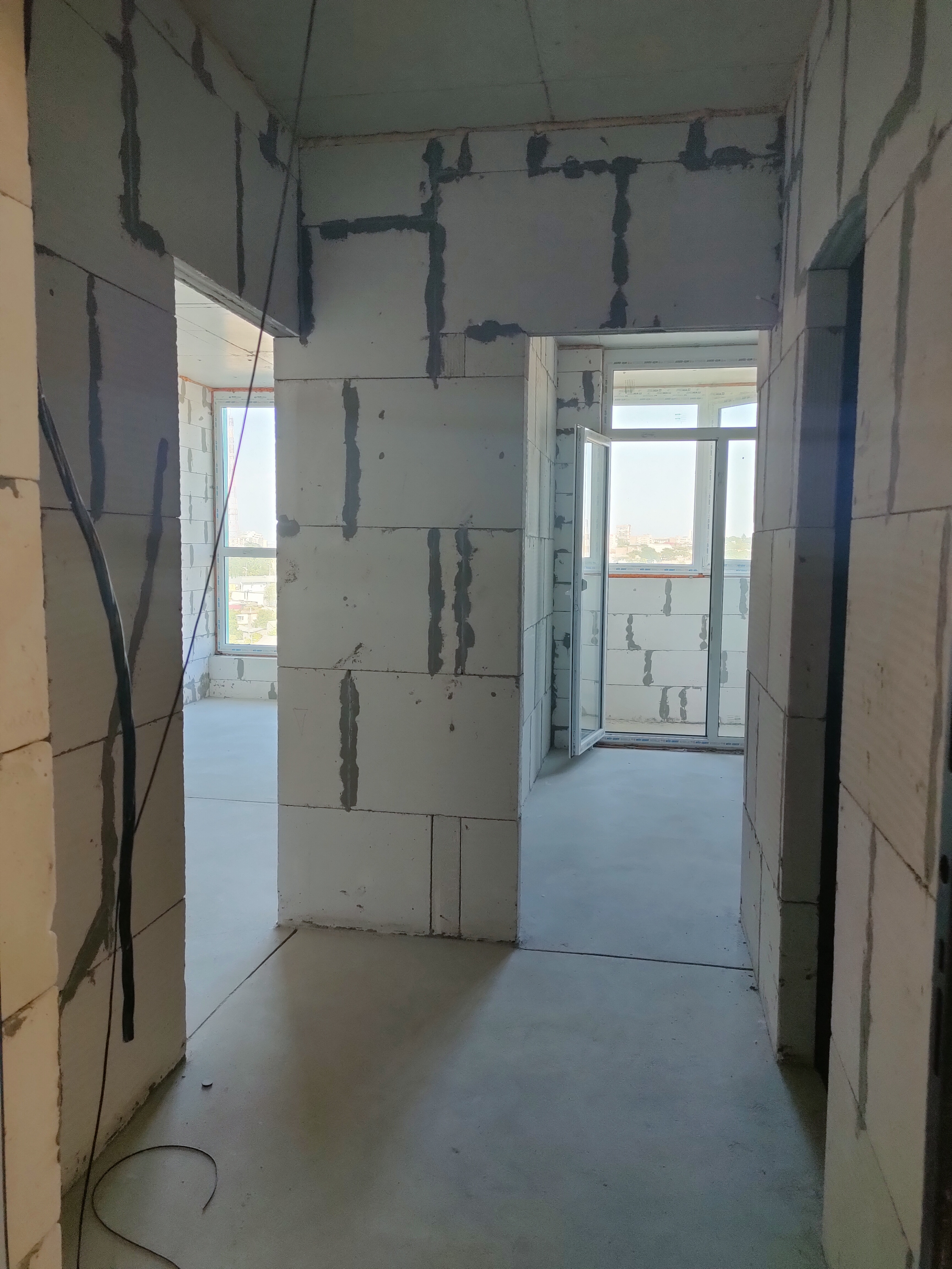 Состояние квартиры от строителей. На полу стяжка, стены не шпаклеваны. Установлены и подключены радиаторы отопления. В квартиру заведена электрика, сантехника, пожарная сигнализация, интернет. Лоджия застеклена. Установлено крепление для наружного блока кондиционера.
