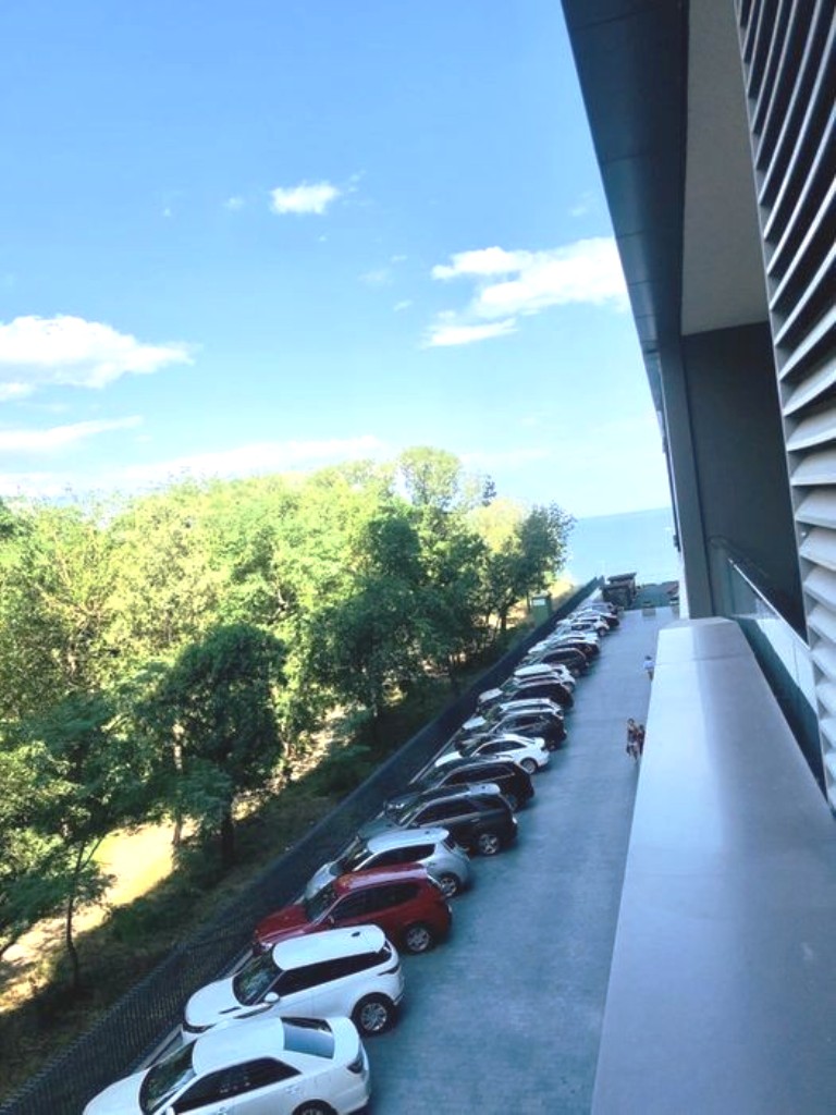 Красивый дизайнерский ремонт, вид с балкона на санаторий Чкалова и море.