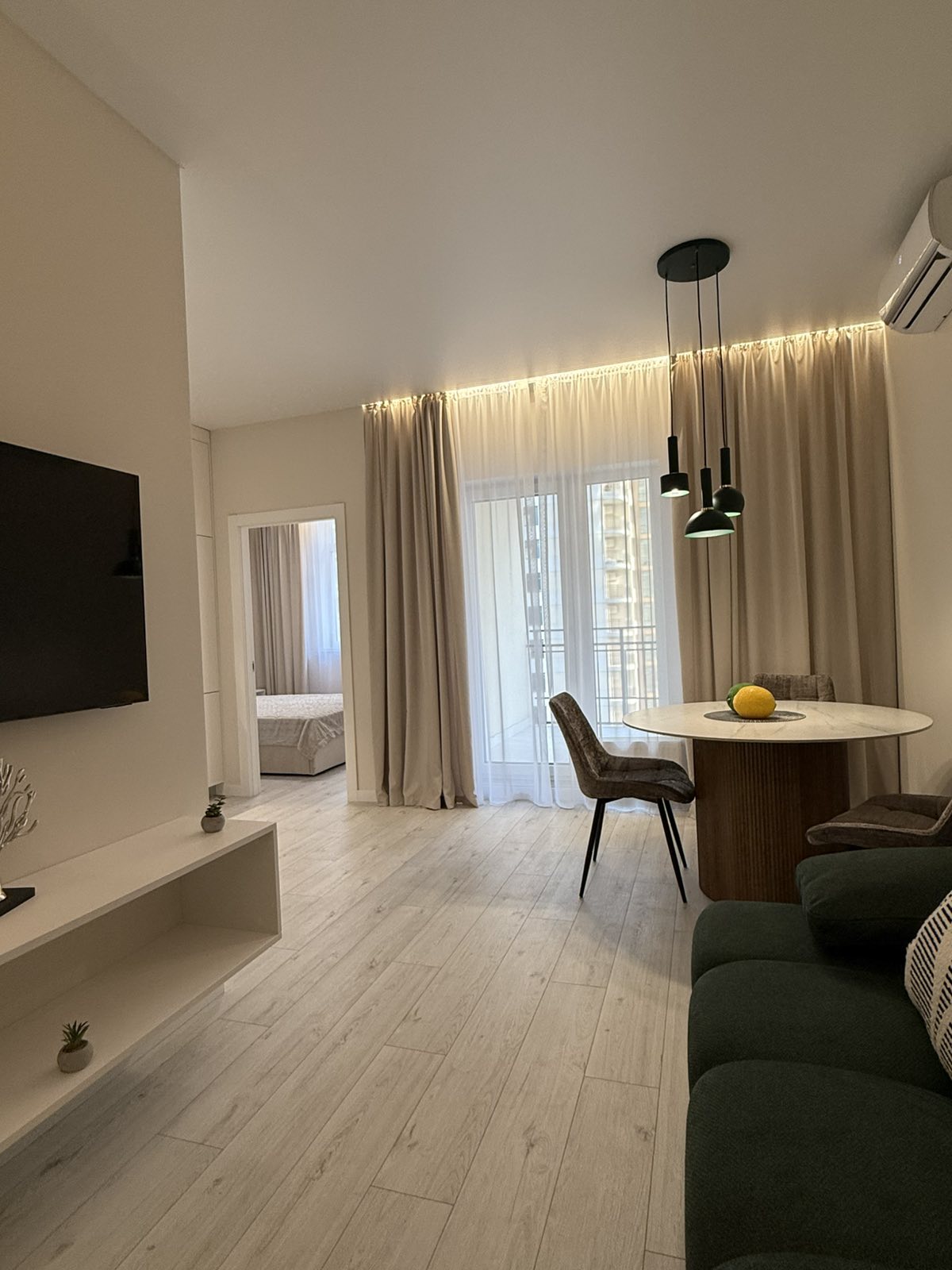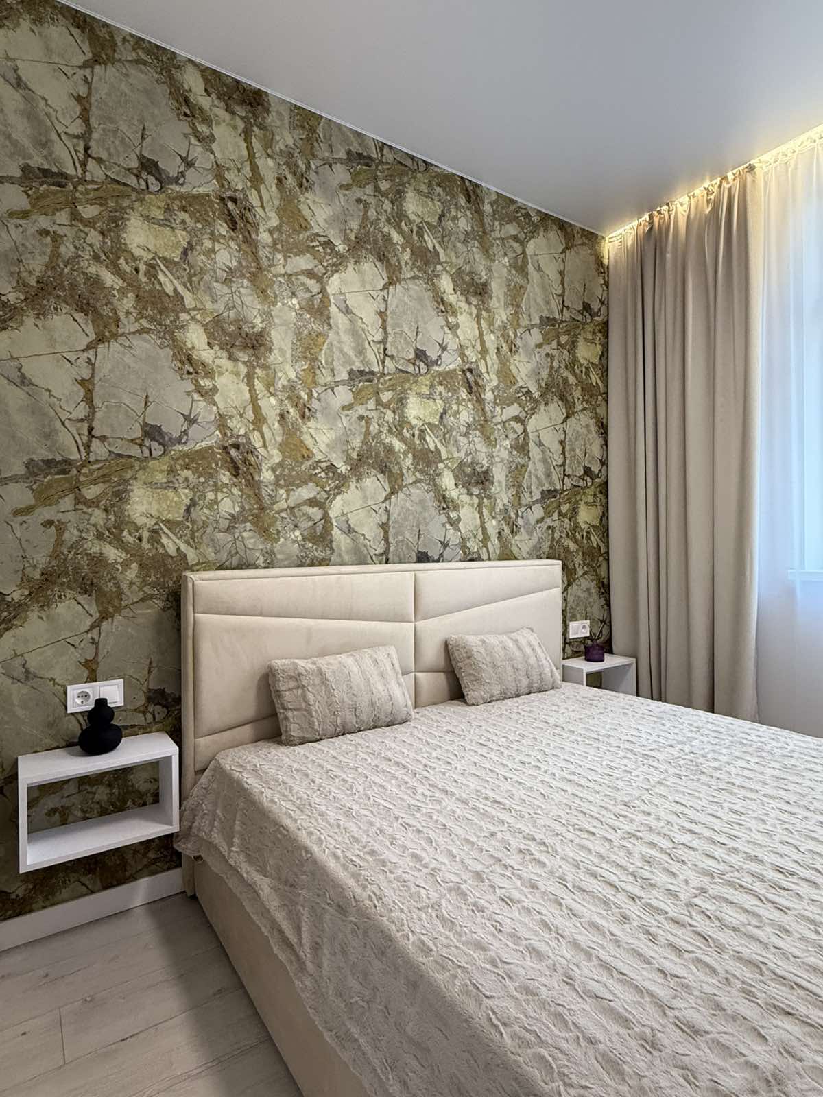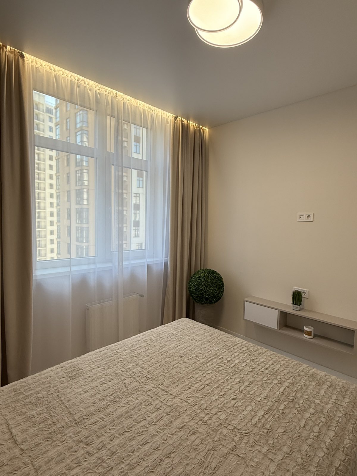 Красивая квартира в новом ЖК на Краснова. Уютная кухня-гостиная с выходом на большую круглую террасу. Светлая спальня с большой гардеробной. Потрясающий вид во двор и на ипподром. Квартира с мебелью и бытовой техникой.
