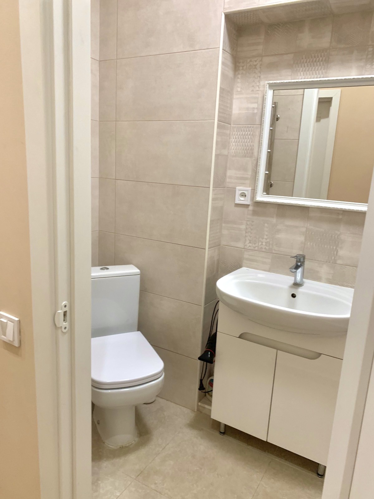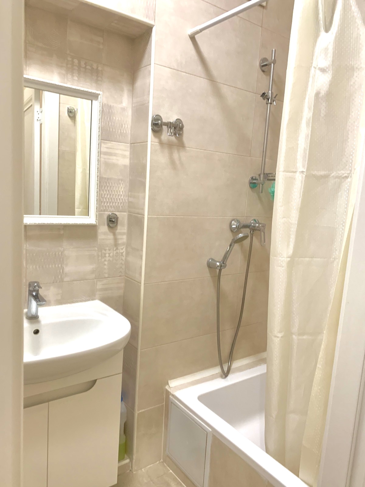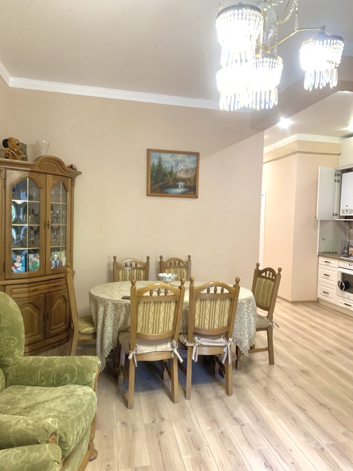 Общая площадь — 61 м². Двусторонняя, светлая, с современным ремонтом в спокойных тонах. Высокие потолки.