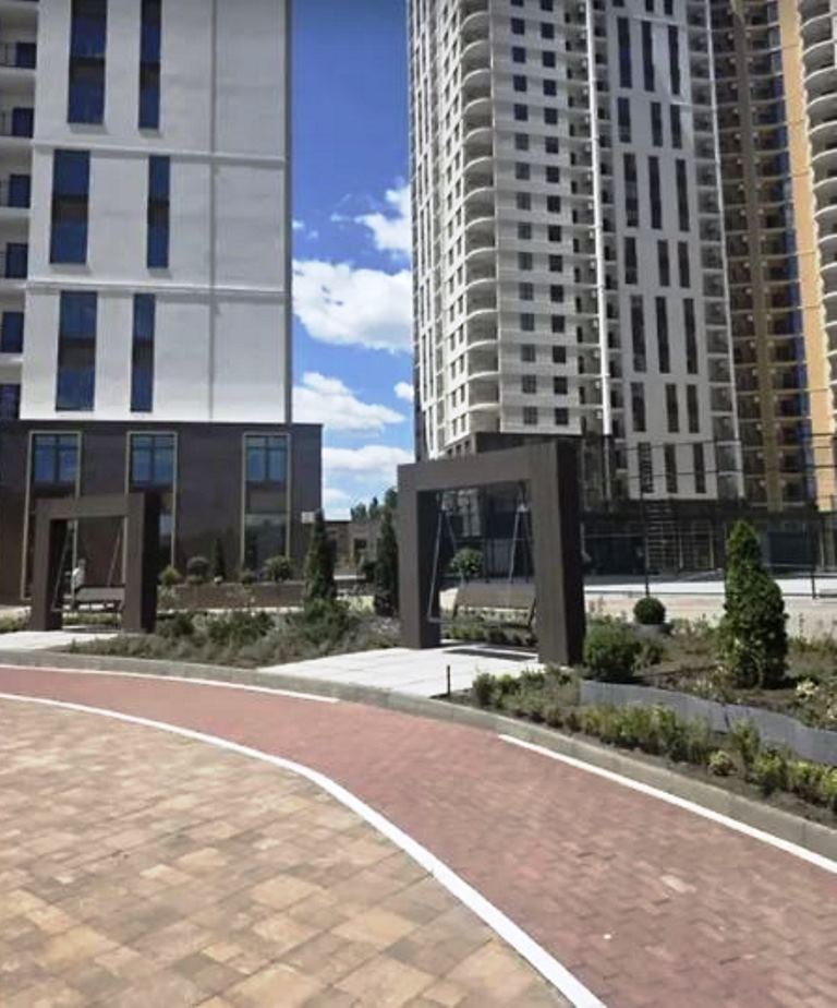 Закрытая охраняемая территория с ландшафтным дизайном.