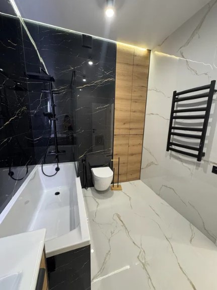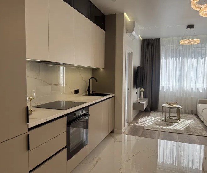 Дом с закрытой территорией, охраной, видеонаблюдением и подземным паркингом. Отличная локация — рядом ТРЦ Gagarinn, супермаркеты, кафе, транспорт, море в пешей доступности.