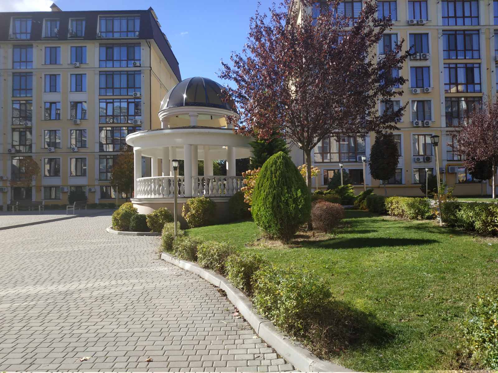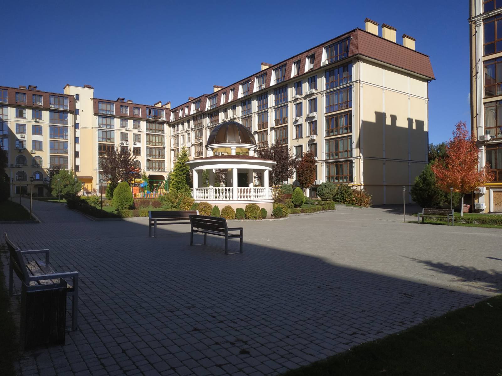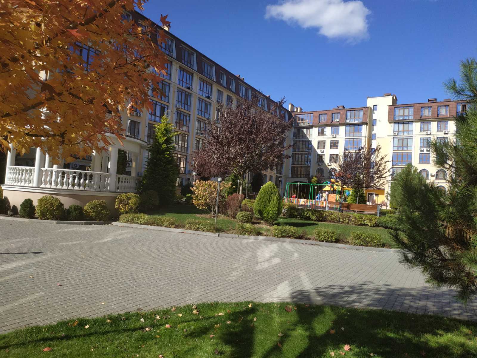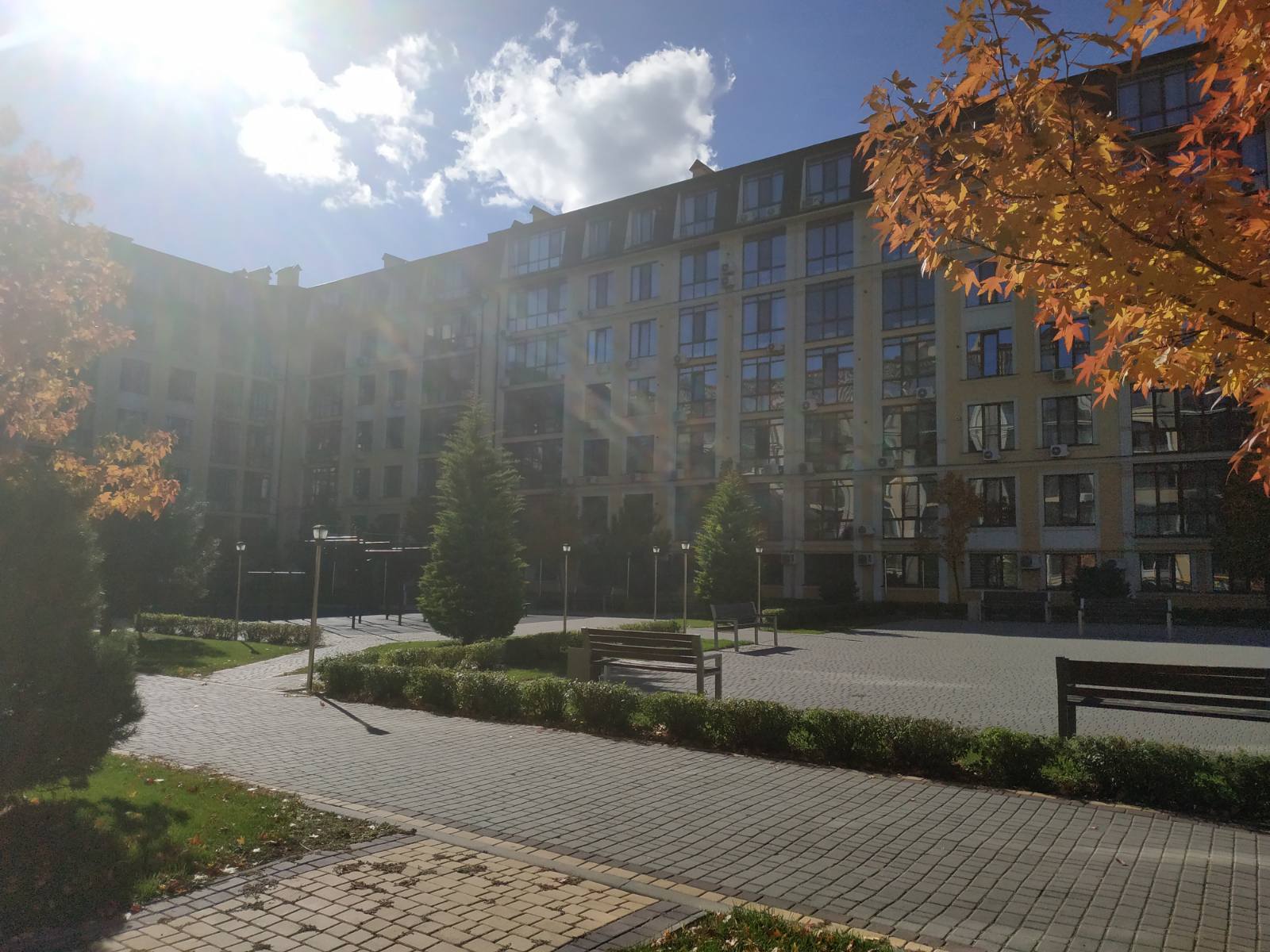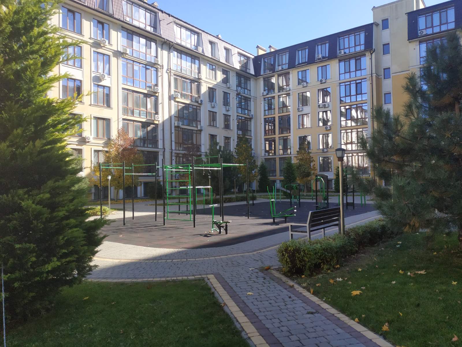 Закрытая охраняемая территория, игровая детская площадка, спортивная площадка, места для отдыха, супермаркет Таврия и аптека находятся на первом этаже комплекса.