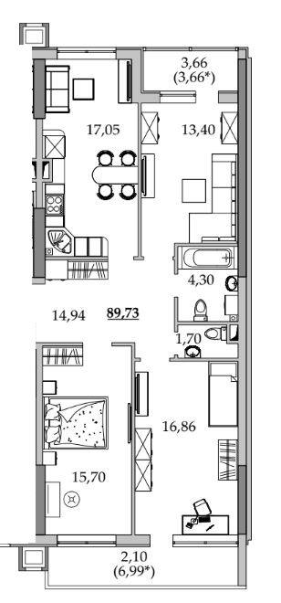 Продуманная современная планировка: две отдельные комнаты и просторная кухня-студия.