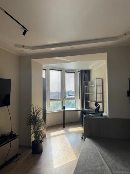 Огромная кухня-гостиная с эркером и панорамными окнами и три отдельные спальни. Большая гардеробная, два балкона.