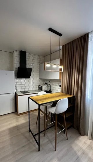 Новый сданный дом. Квартира грамотно спланирована. Большая кухня-студия и можно выделить зону спальни стеклянной перегородкой. Мебель и бытовая техника.