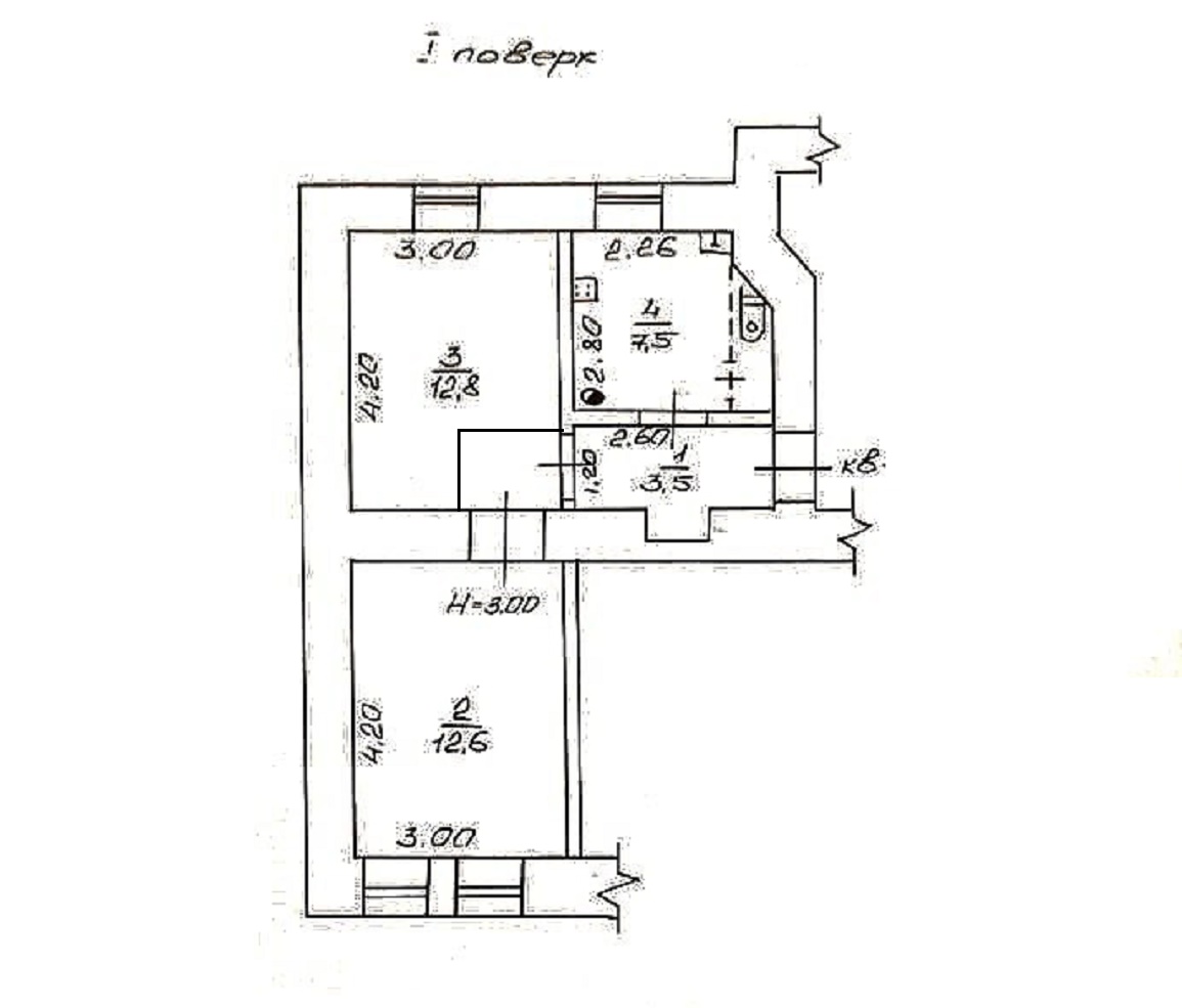 1/3 эт., 37/26/8 кв.м., правильная планировка, комнаты раздельные, на разные стороны, потолки 3 м.