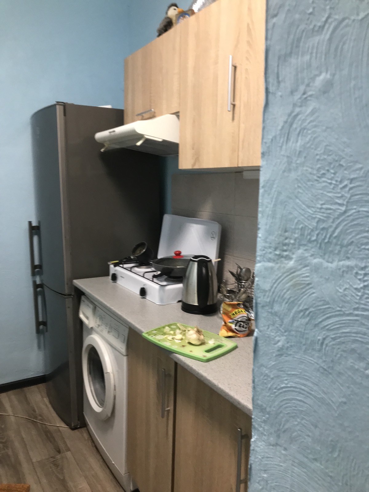 Газплита, электроотопление, есть своя кладовка. Комнаты смежные.