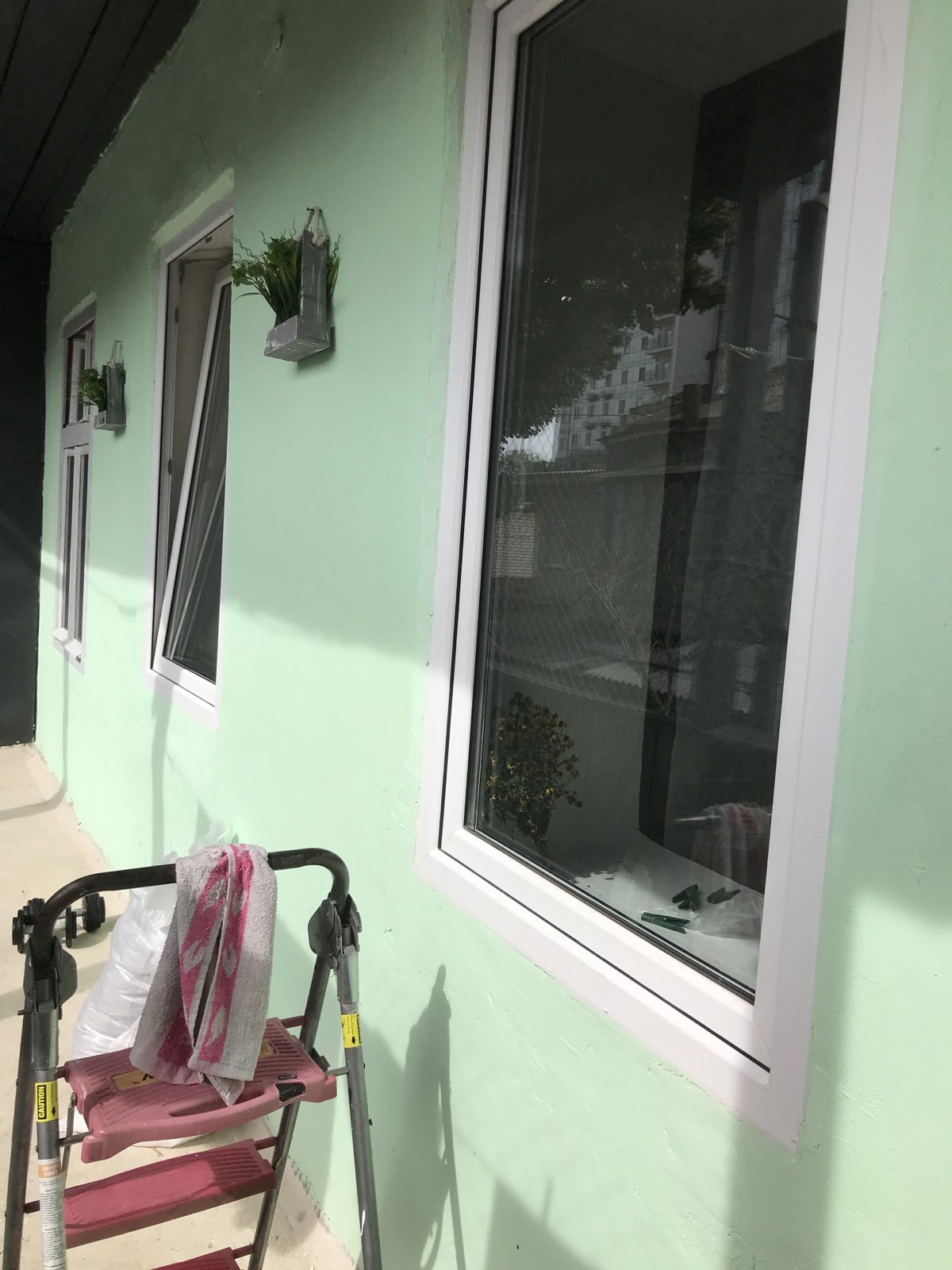 Окна во двор, на свою светлую веранду, зарешеченную сеткой - рабицей.