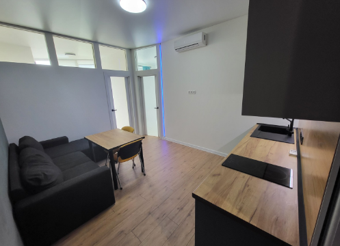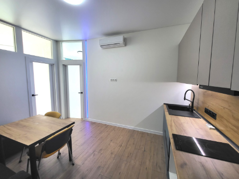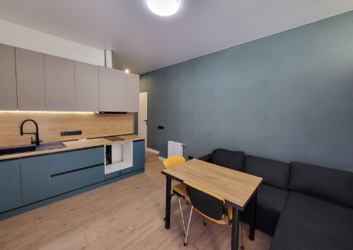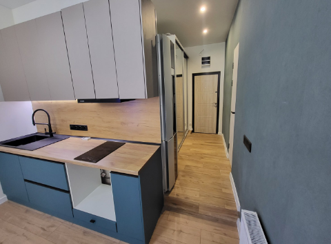 Общая площадь квартиры 40м2. Квартира распланирована в кухню-гостиную, спальню и детскую. Ремонт в квартире только закончен. Встроенная кухня оборудована каменной мойкой, варочной поверхностью и вытяжкой, предусмотрено место под духовой шкаф. Есть холодильник, стиральная машина. Установлен кондиционер. Квартира продается с мебелью и техникой.