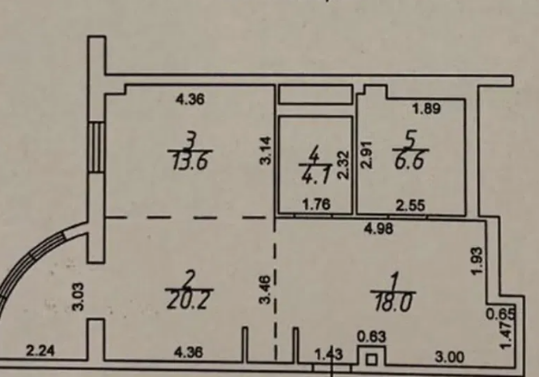 Общая площадь квартиры 65 кв.м: просторная кухня-гостиная, спальня с большой гардеробной, санузел совмещенный.