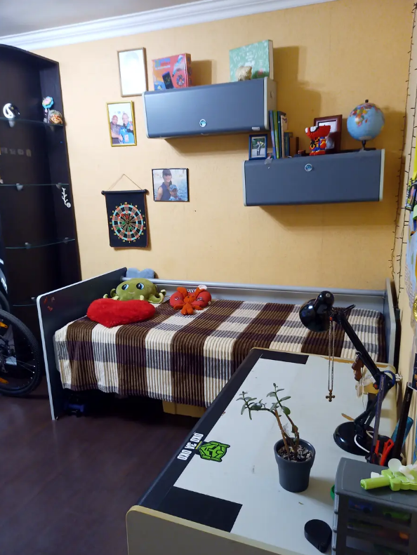 В квартире остается мебель и техника: кровати, шкаф, холодильник, стиральная машина, кондиционер.