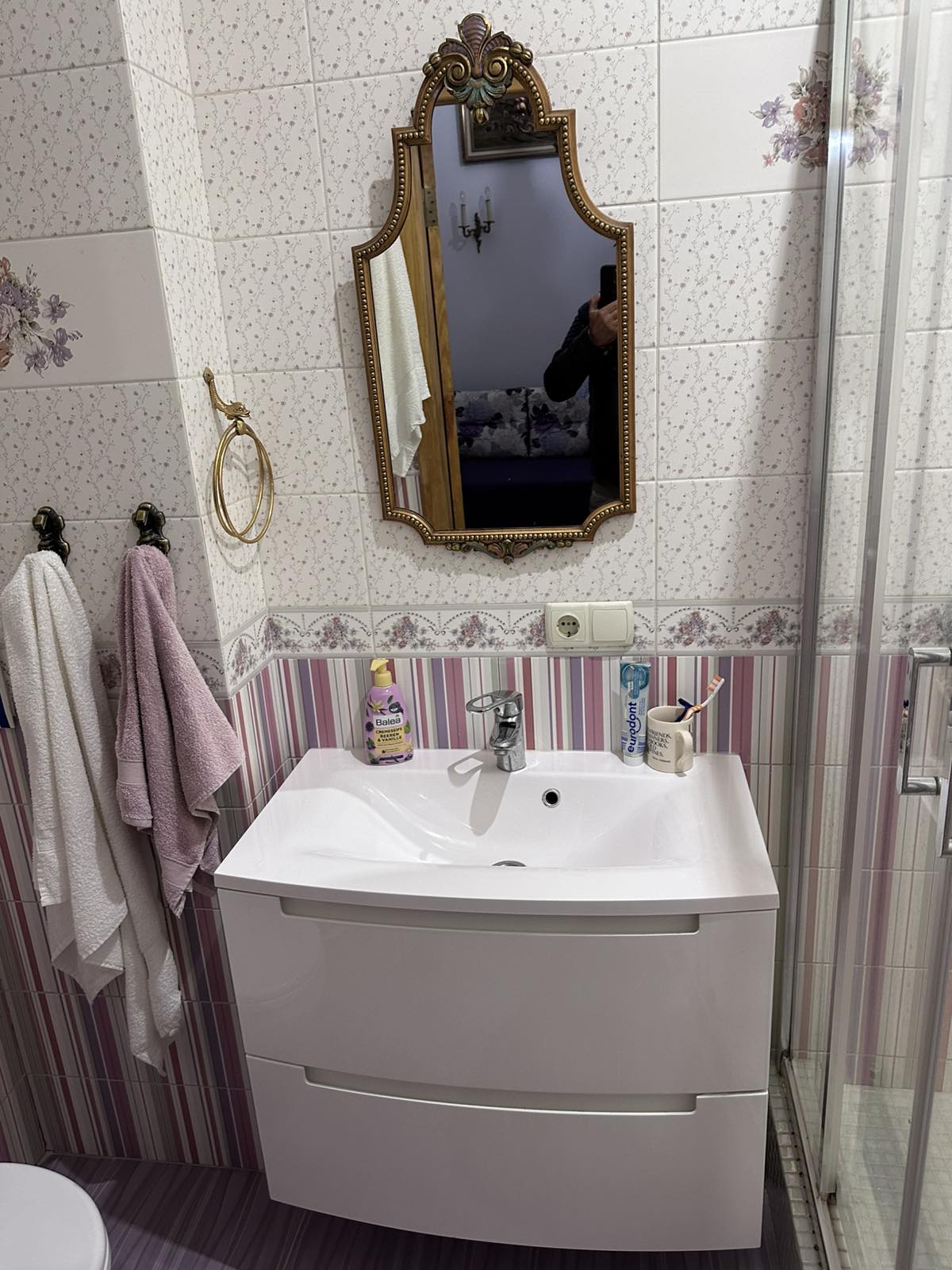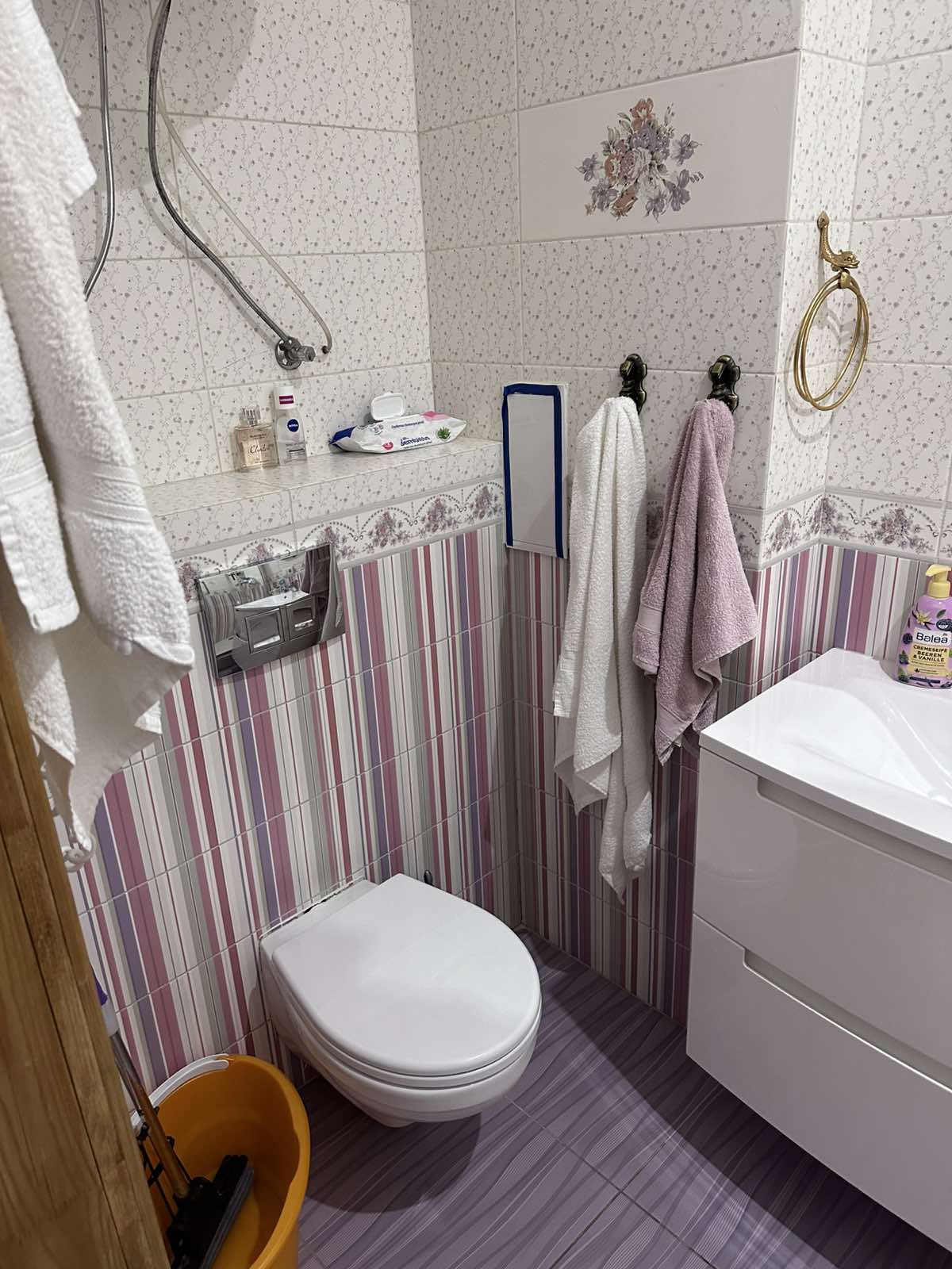 -Современный санузел — облицован качественной плиткой, легко ухаживать